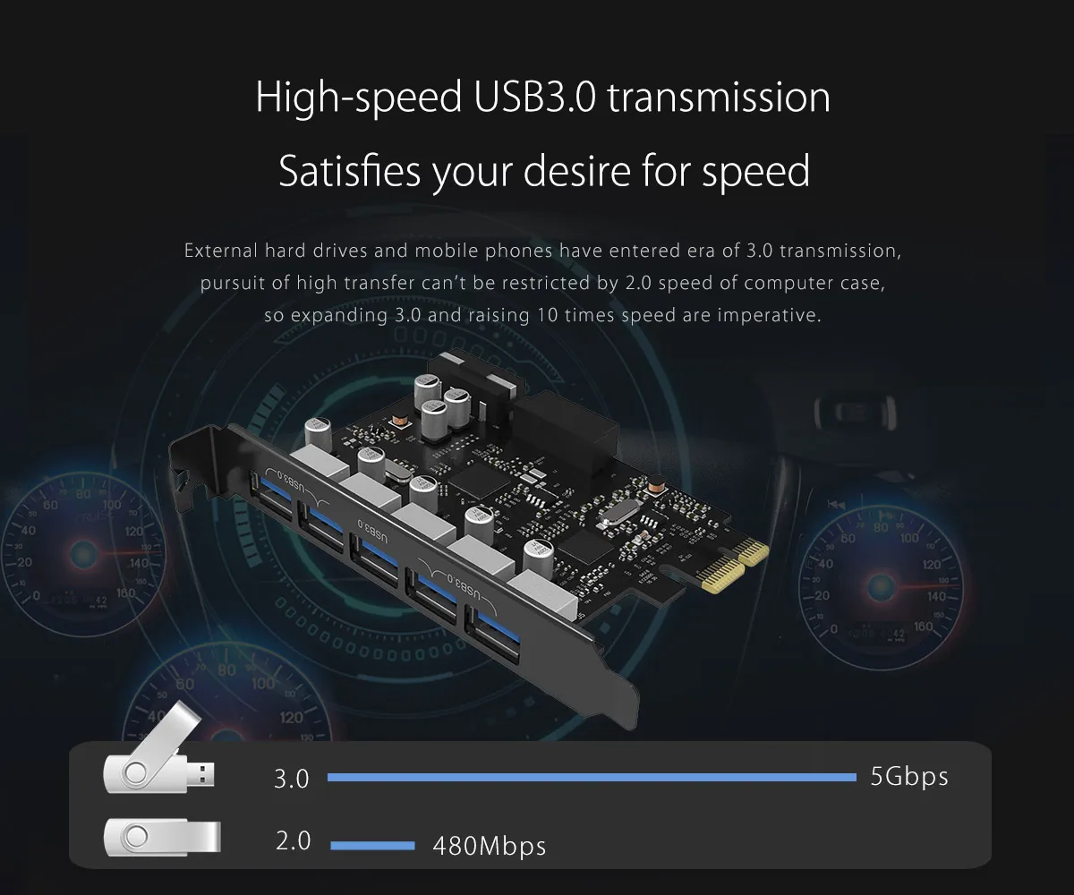 -Tarjeta ORICO Booster USB3.0 PCI Express Compatible con cualquier ordenador de escritorio con Windows con ranura PCI Express x1, x4, x8 o x16 disponible y no cabe en la ranura PCI.