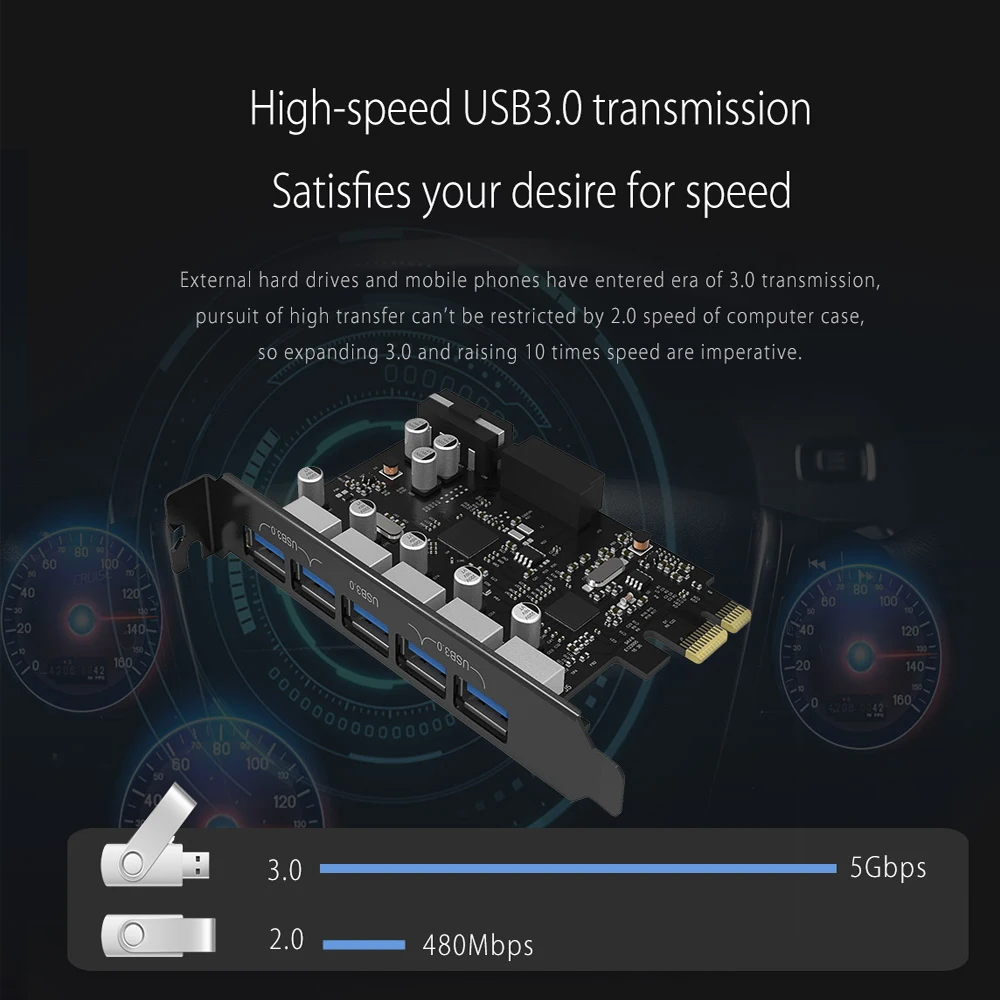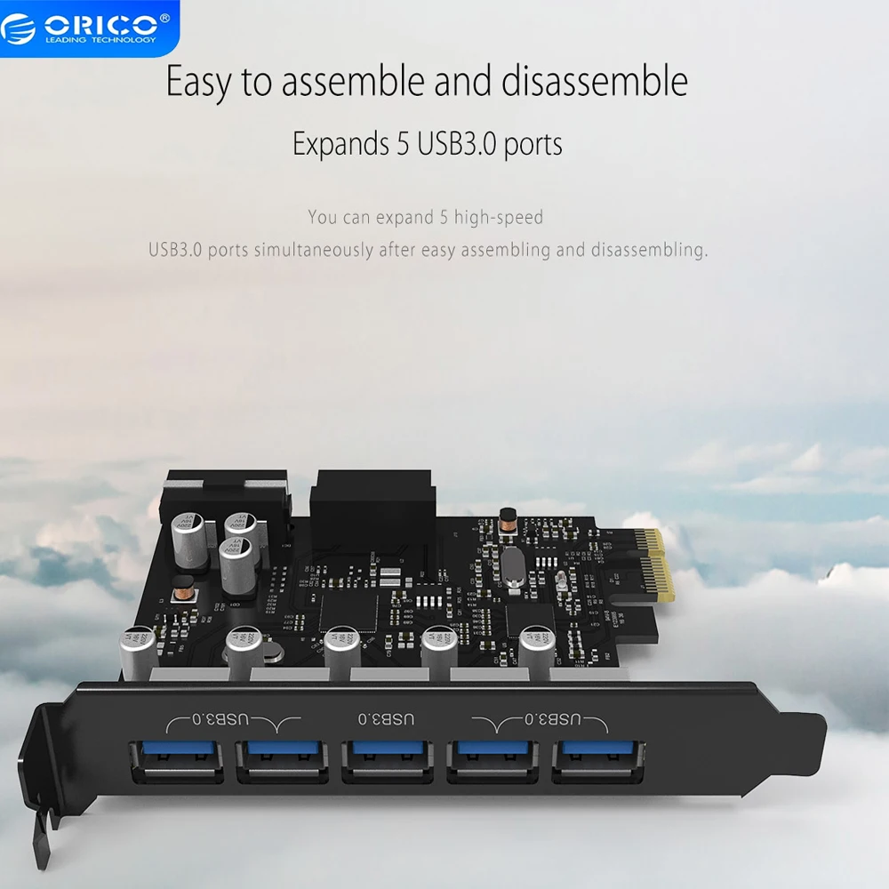 Comprar ORICO-tarjeta de expansión USB 3,0 PCI-E, adaptador Hub de 5 puertos, controlador externo, tarjeta Express con conector de alimentación de 4 pines, PCIE Adapt