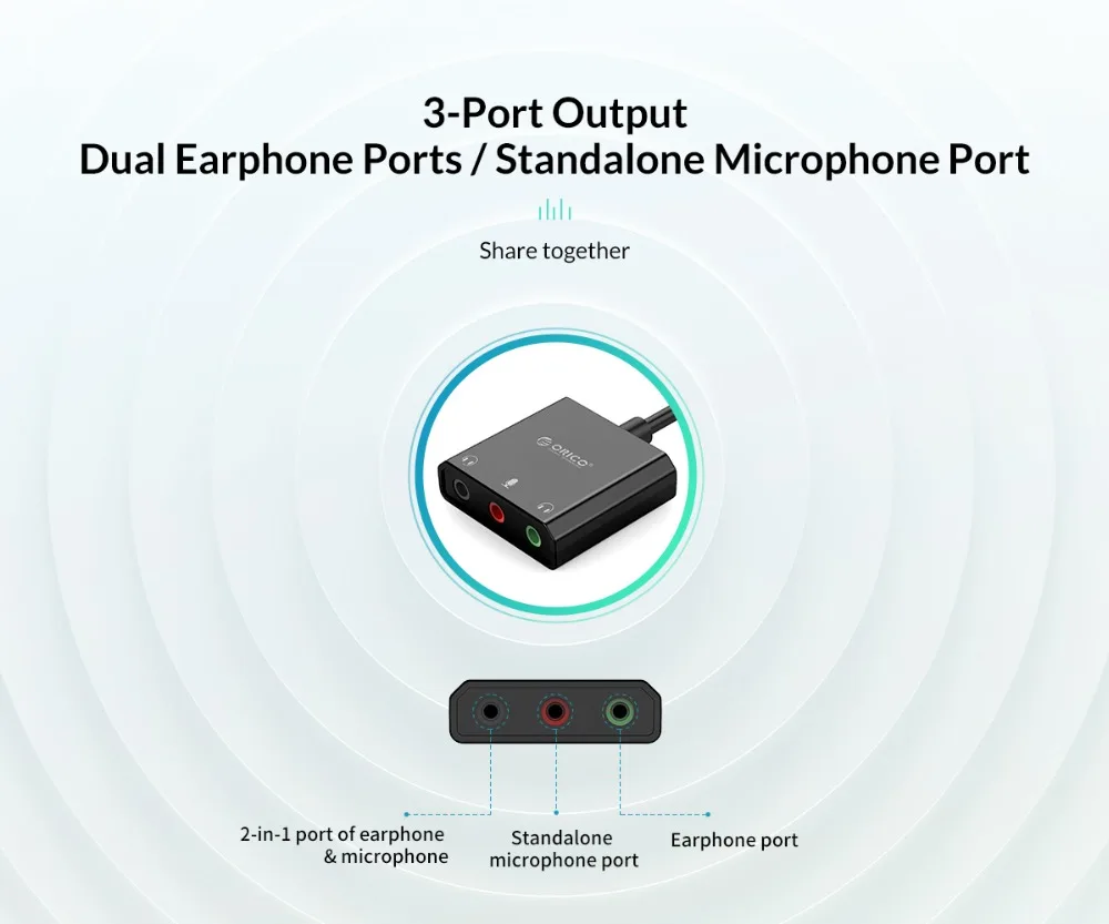 (1). El adaptador de tarjeta de sonido incorporado está dañado o funciona mal, reemplácelo con el adaptador de tarjeta de sonido de audio externo ORICO. Funcionará y mejorará su experiencia cuando Escuche música, vea películas o juegue.