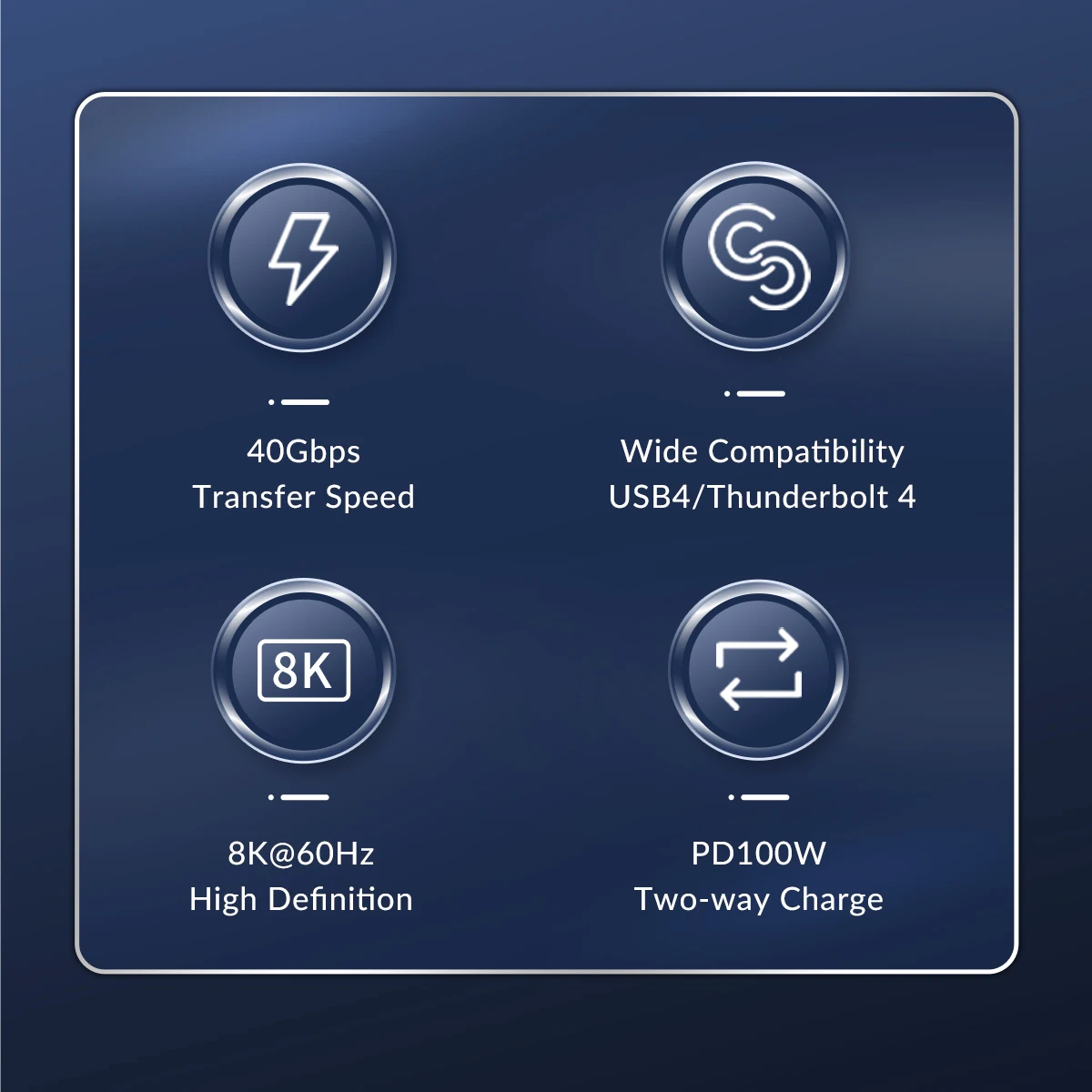 ¡Equipado con el último chip Intel Thunderbolt 4! Cable Thunderbolt 4/USB 4 certificado oficialmente. Velocidad de transmisión rápida y alta compatibilidad de protocolo.