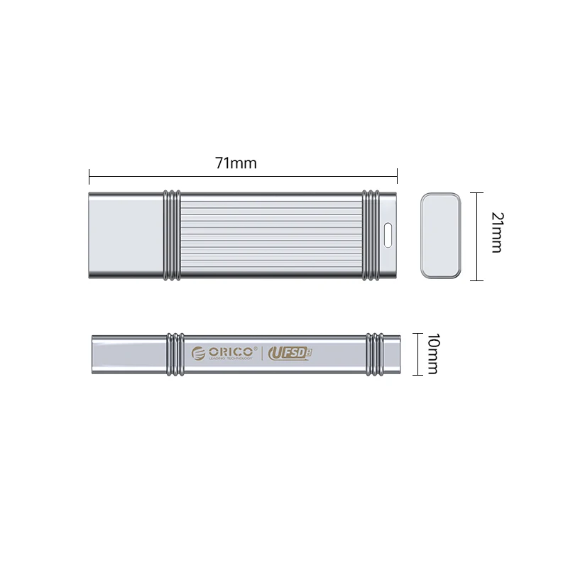 La unidad flash ORICO UFSD USB3.2 Gen1 cuenta con una carcasa de metal elegante pero resistente que protege la unidad de golpes inesperados.