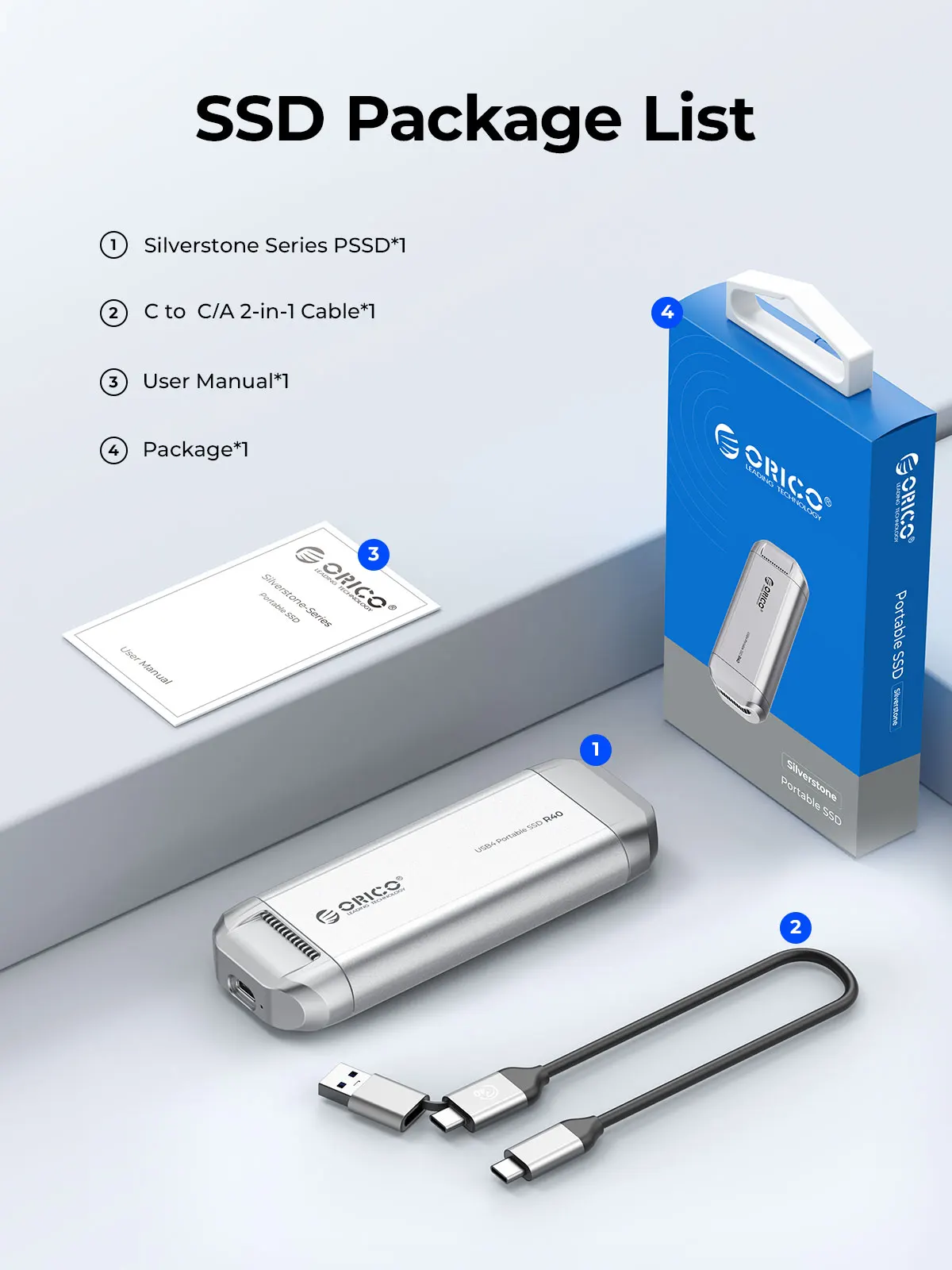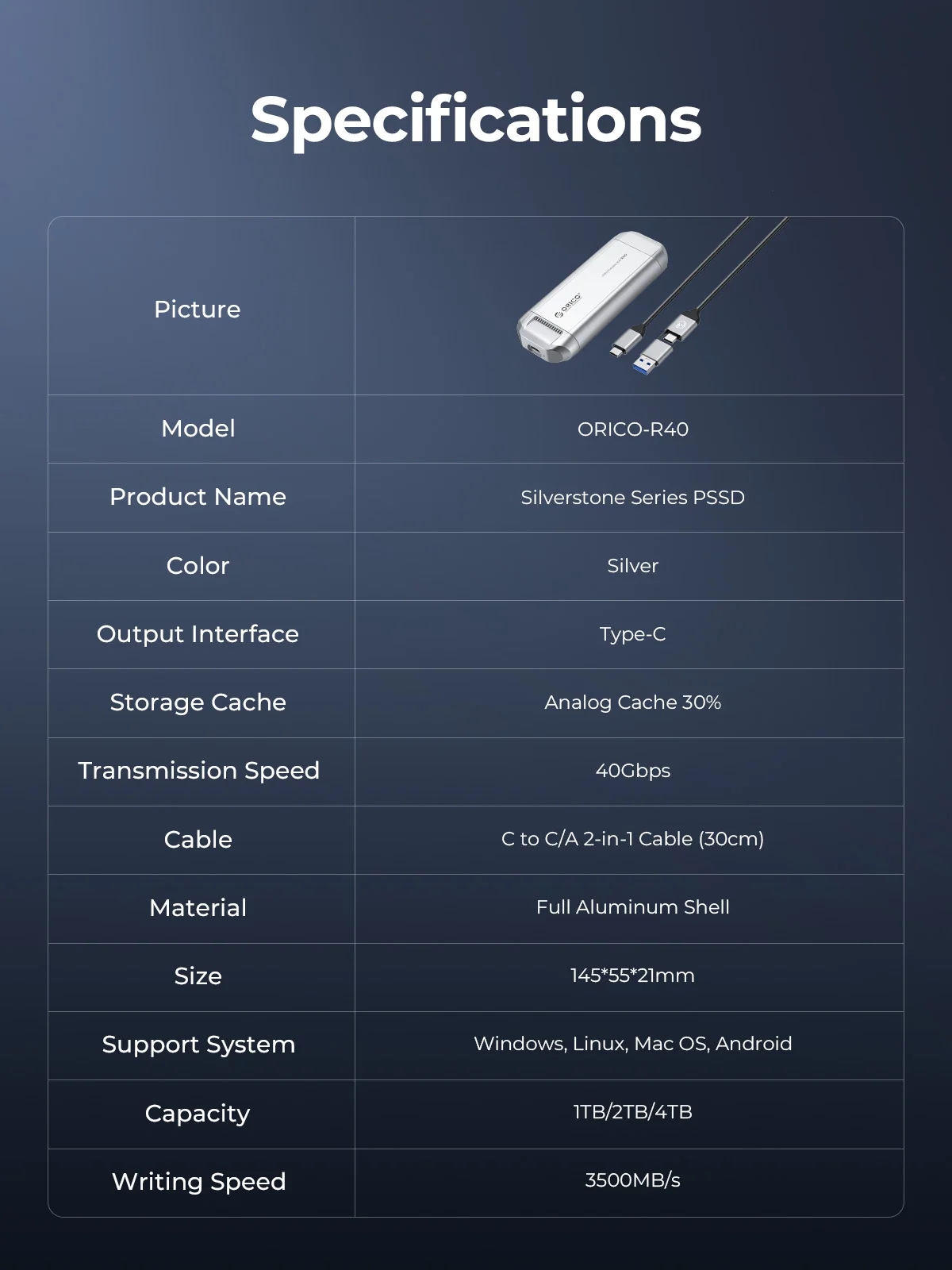 Comprar ORICO-unidad externa de estado sólido Silverstone, SSD portátil de 3500 MB/s, 4TB, 2TB, 1TB, tipo C, aleación de aluminio, PSSD integrado, ventilador de refrigeración