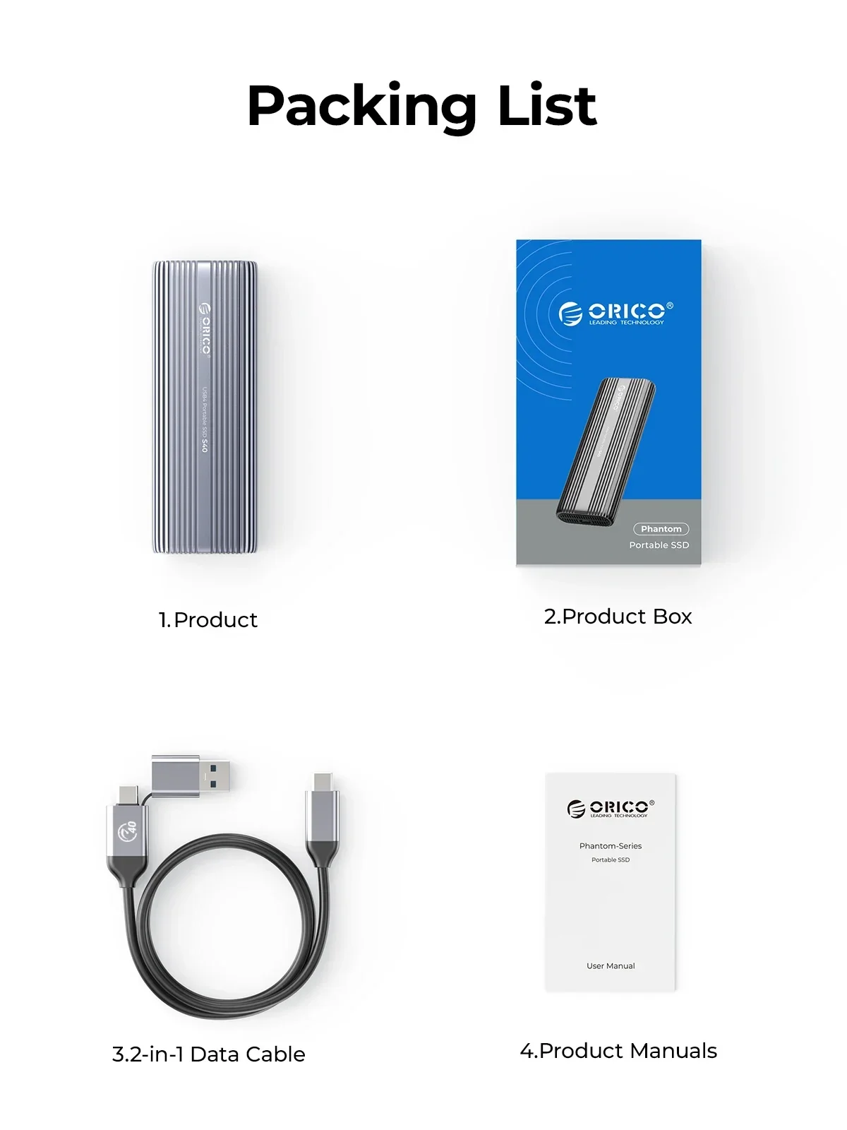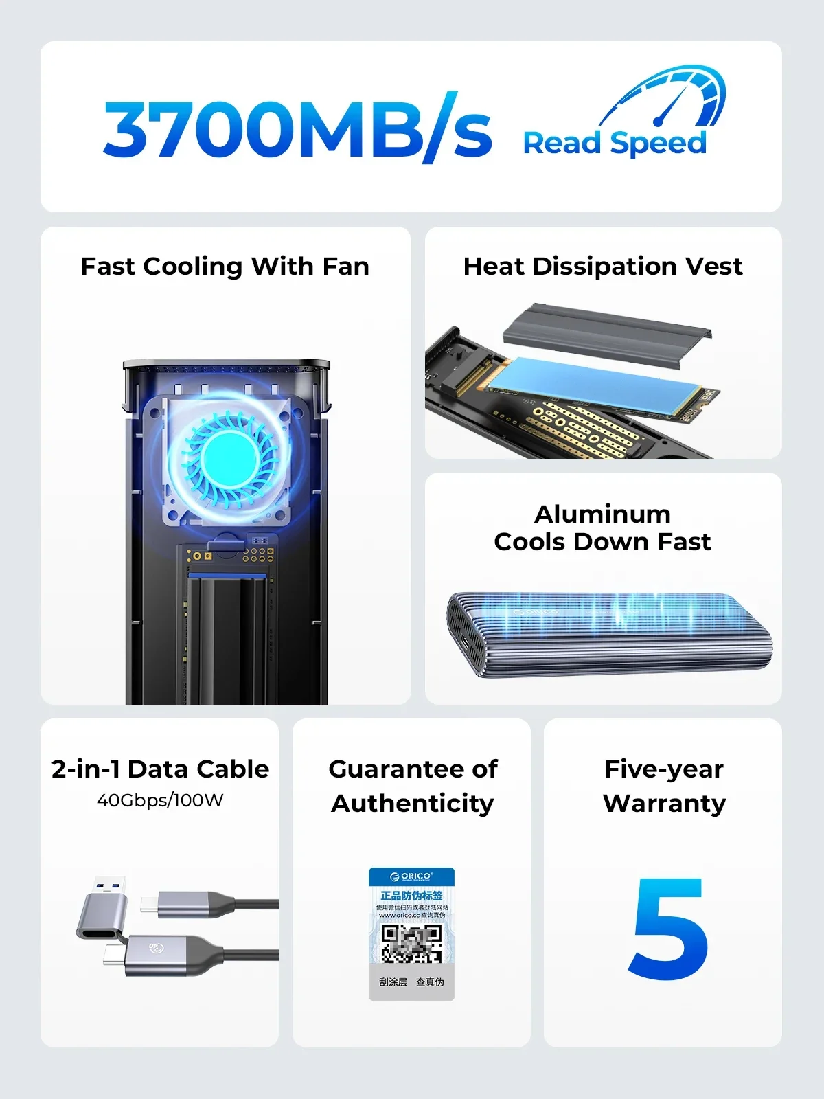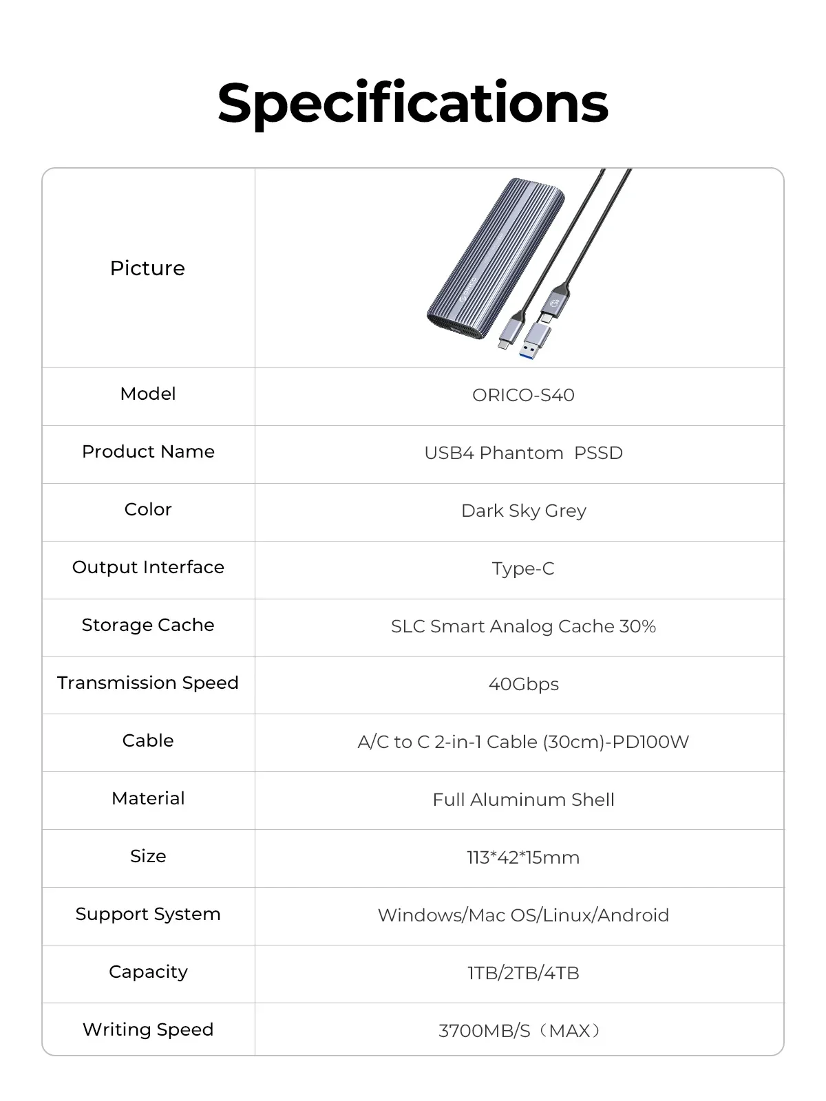 Comprar ORICO-unidad externa de estado sólido USB 4, SSD portátil tipo C, compatible con Thunderbolt 4/3, PSSD de aluminio, ventilador de refrigeración incorporado