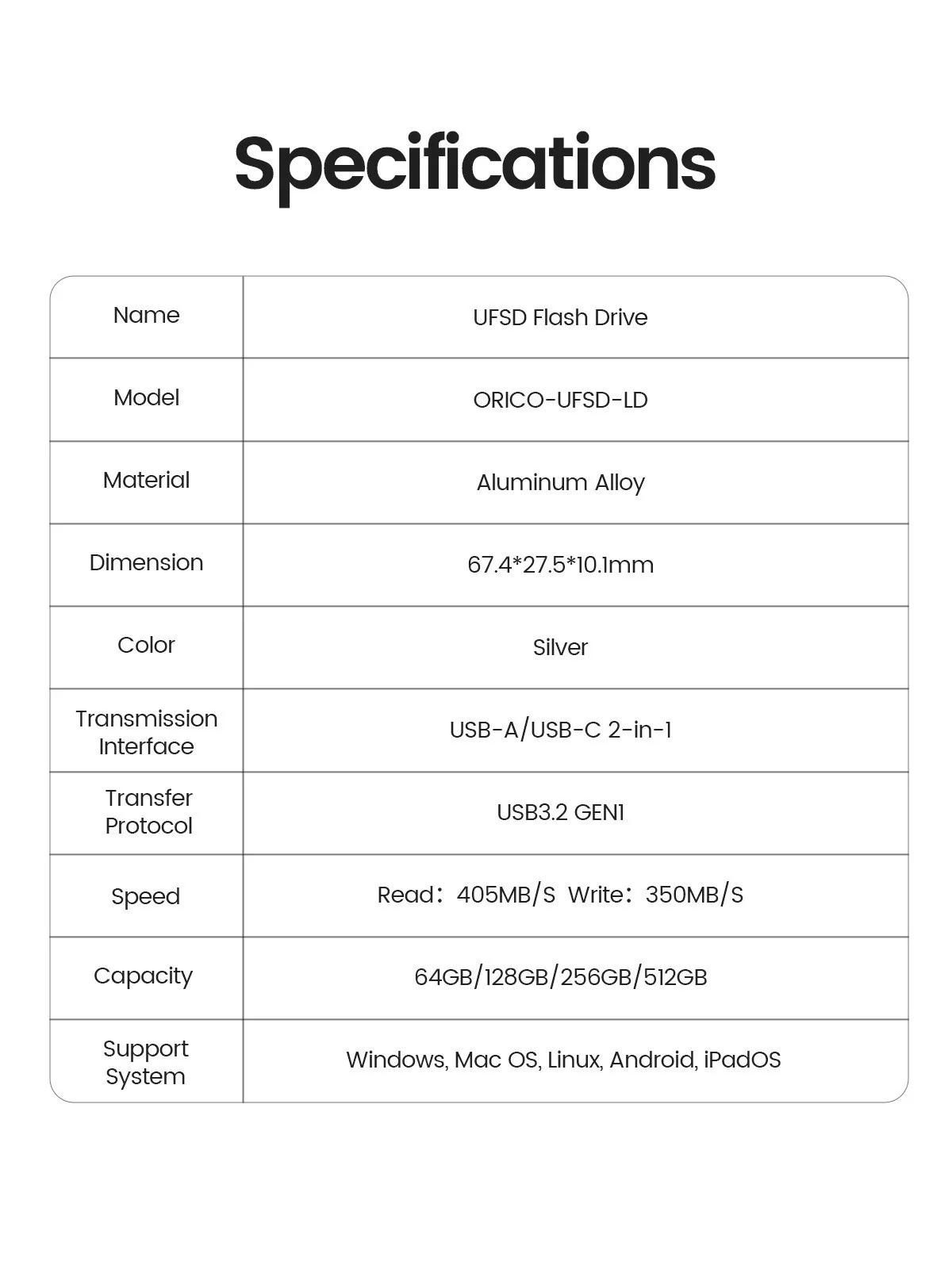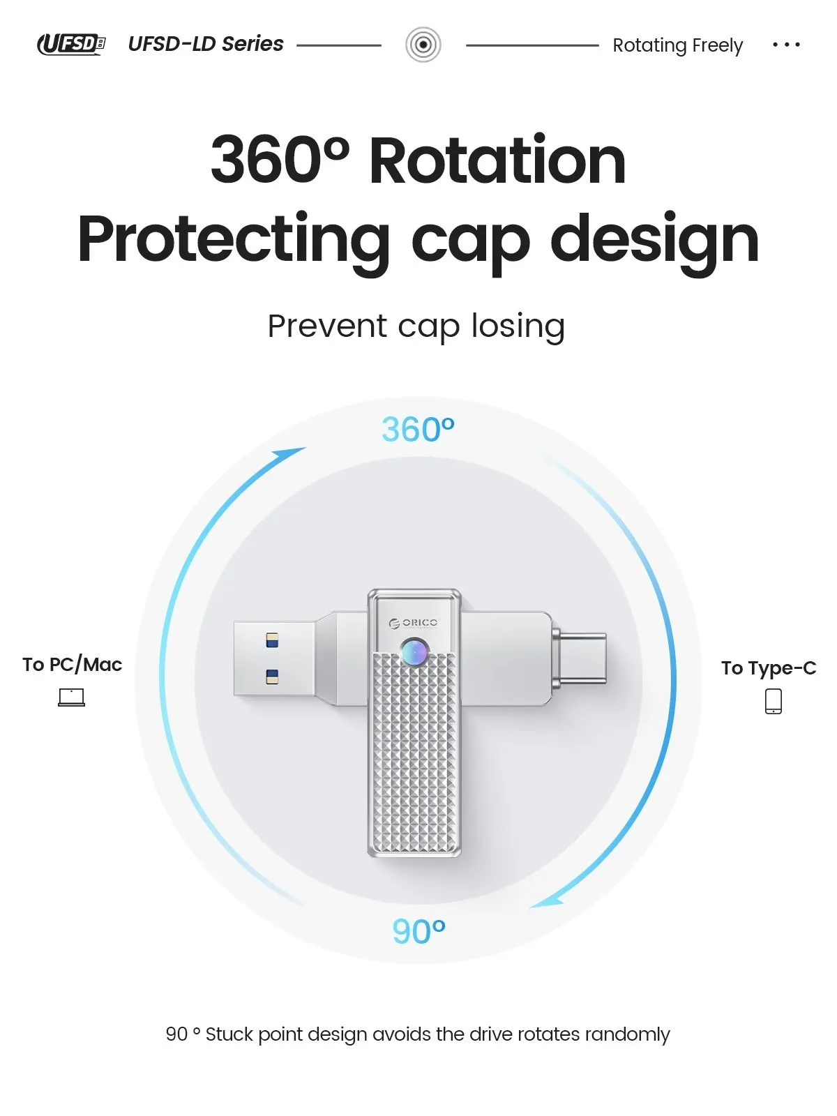 Comprar ORICO-unidad Flash Dual UFSD 2 en 1, pendrive de alta velocidad de 405 MB/S, tipo C, USB A, puerto Dual para MacBook, teléfono inteligente Android, PC