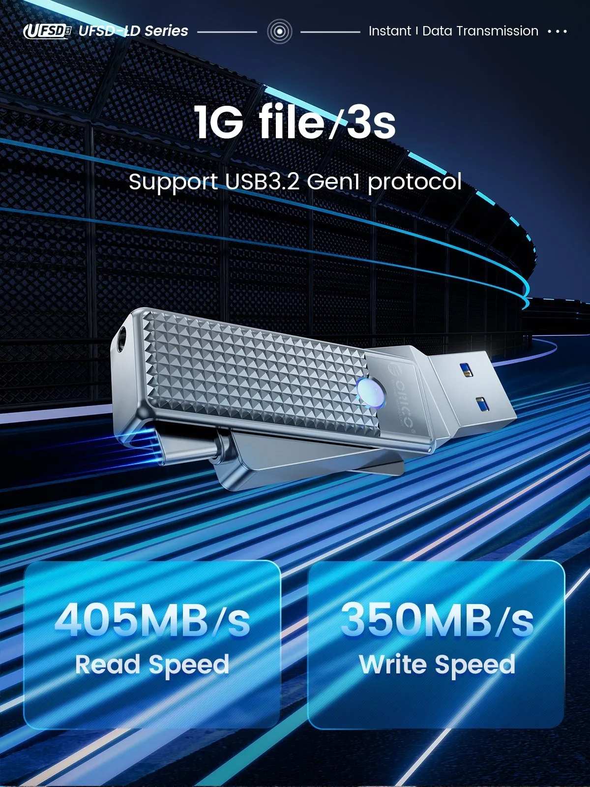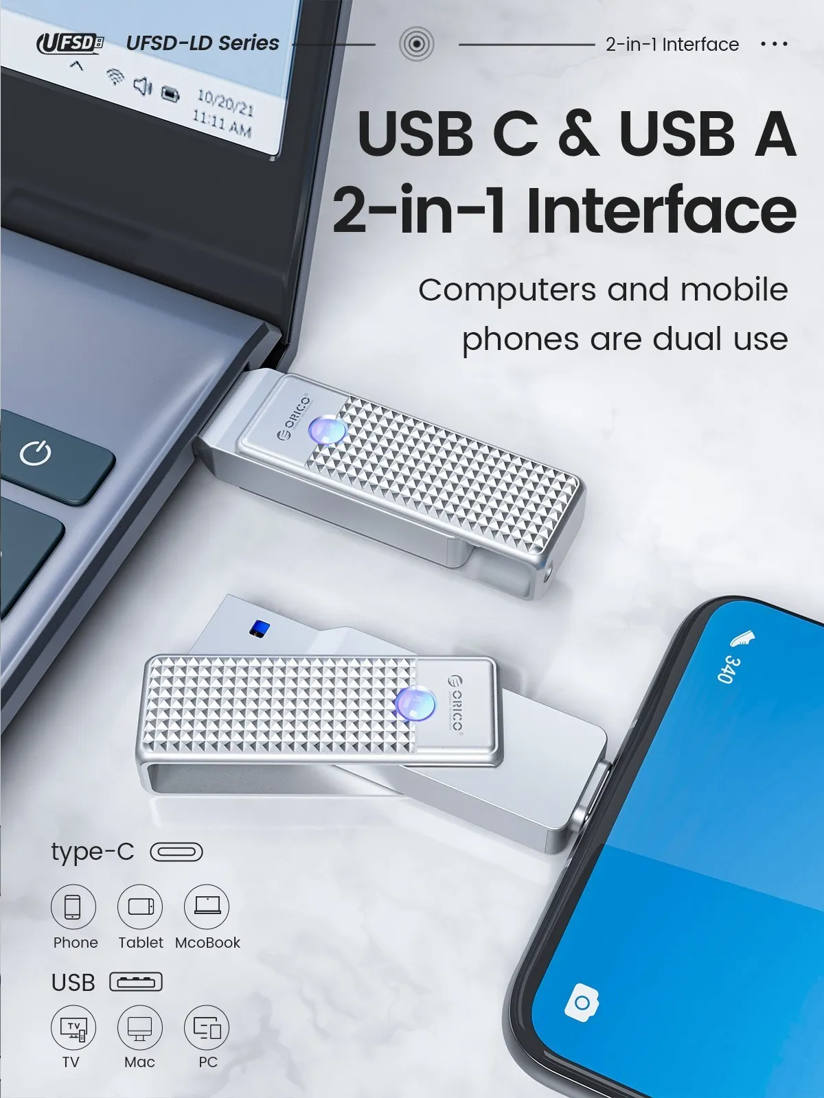 Comprar ORICO-unidad Flash Dual UFSD 2 en 1, pendrive de alta velocidad de 405 MB/S, tipo C, USB A, puerto Dual para MacBook, teléfono inteligente Android, PC