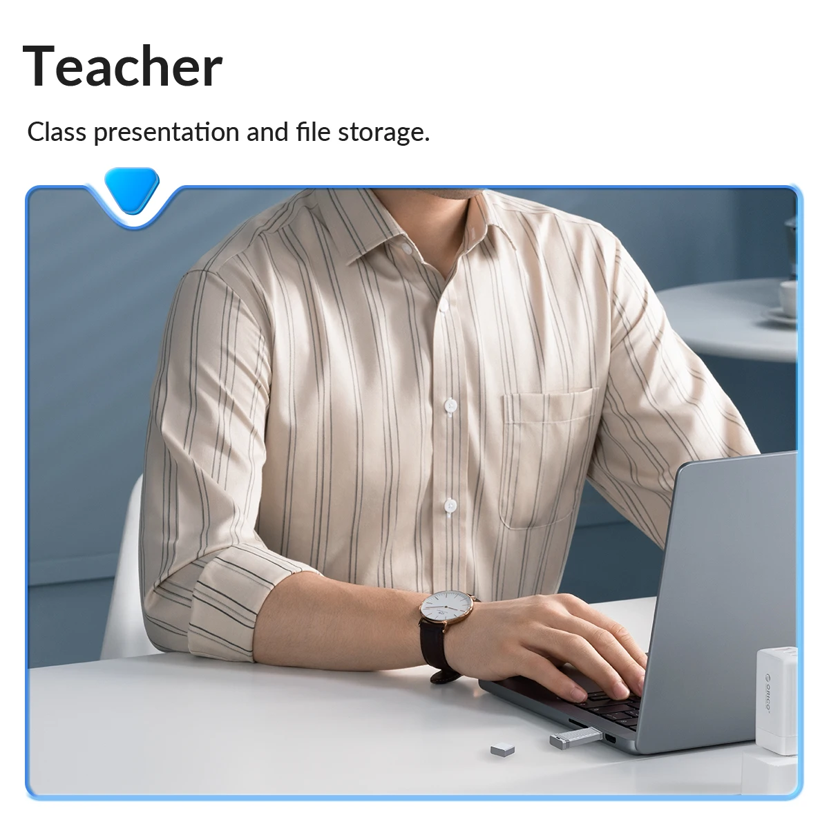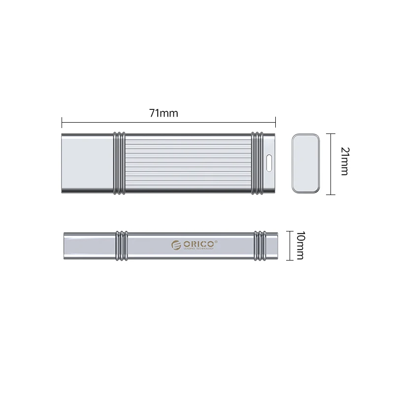 La unidad Flash ORICO USB3.2 Gen1 presenta una carcasa de metal elegante pero resistente que protege la unidad de golpes inesperados.