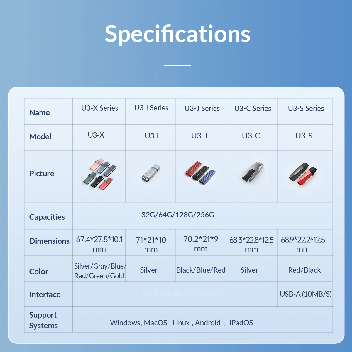 Comprar ORICO-unidad Flash USB 3,2, Pendrive de 32GB, 64GB, 128GB, 256GB, Mini Pendrive de Metal para dispositivos tipo C