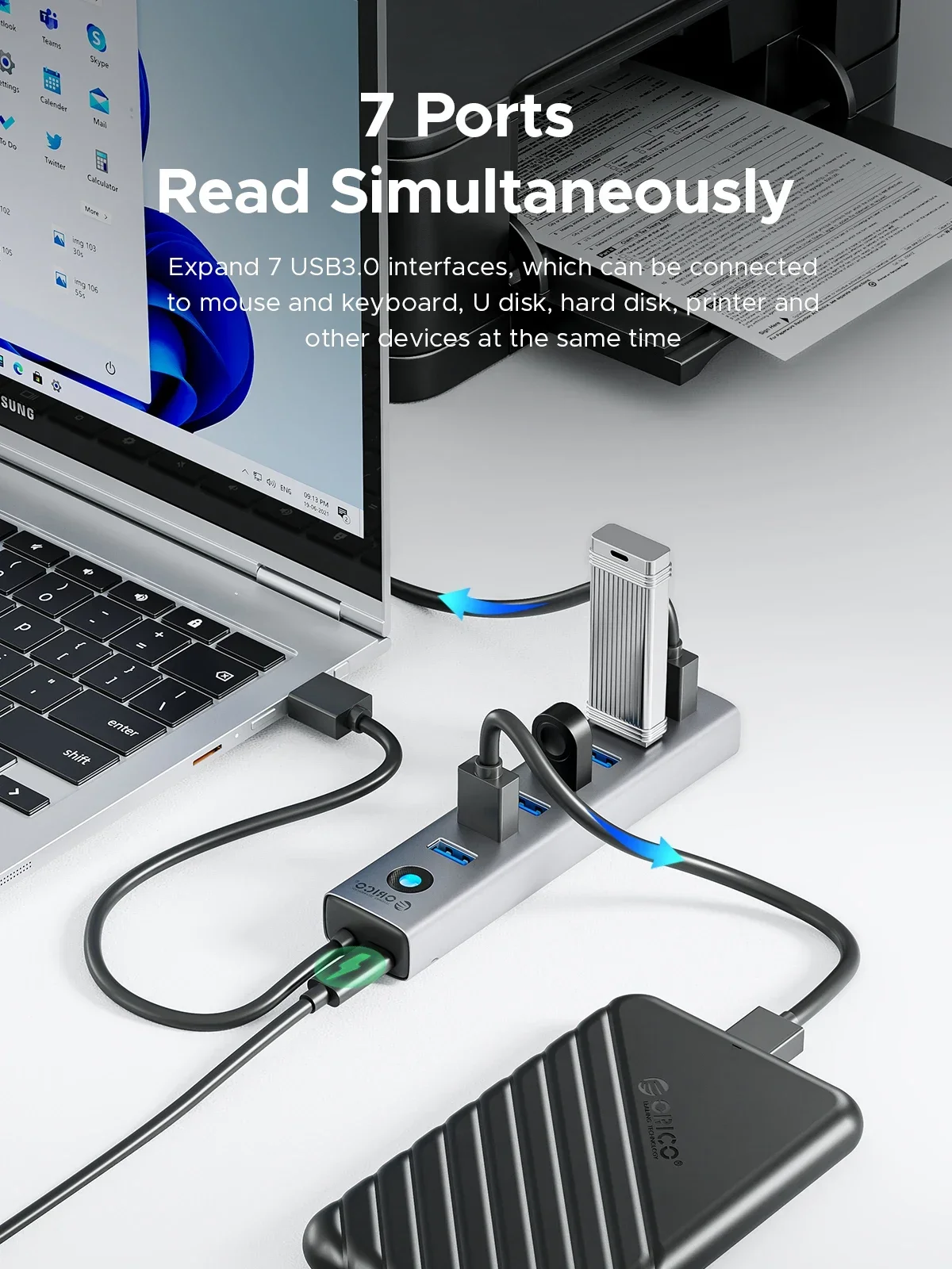 Expansión de 4/7 puertos: aumente su conectividad con 4/7 puertos USB 3.0, perfecto para múltiples periféricos y transferencia de datos de alta velocidad.