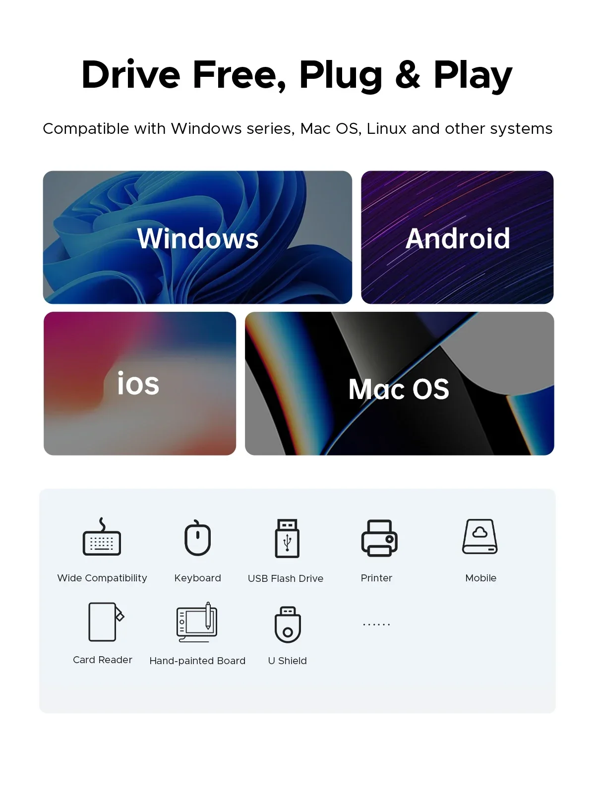 Comodidad Plug & Play: No se necesitan controladores; El diseño plug-and-play del concentrador facilita la configuración para cualquier usuario.