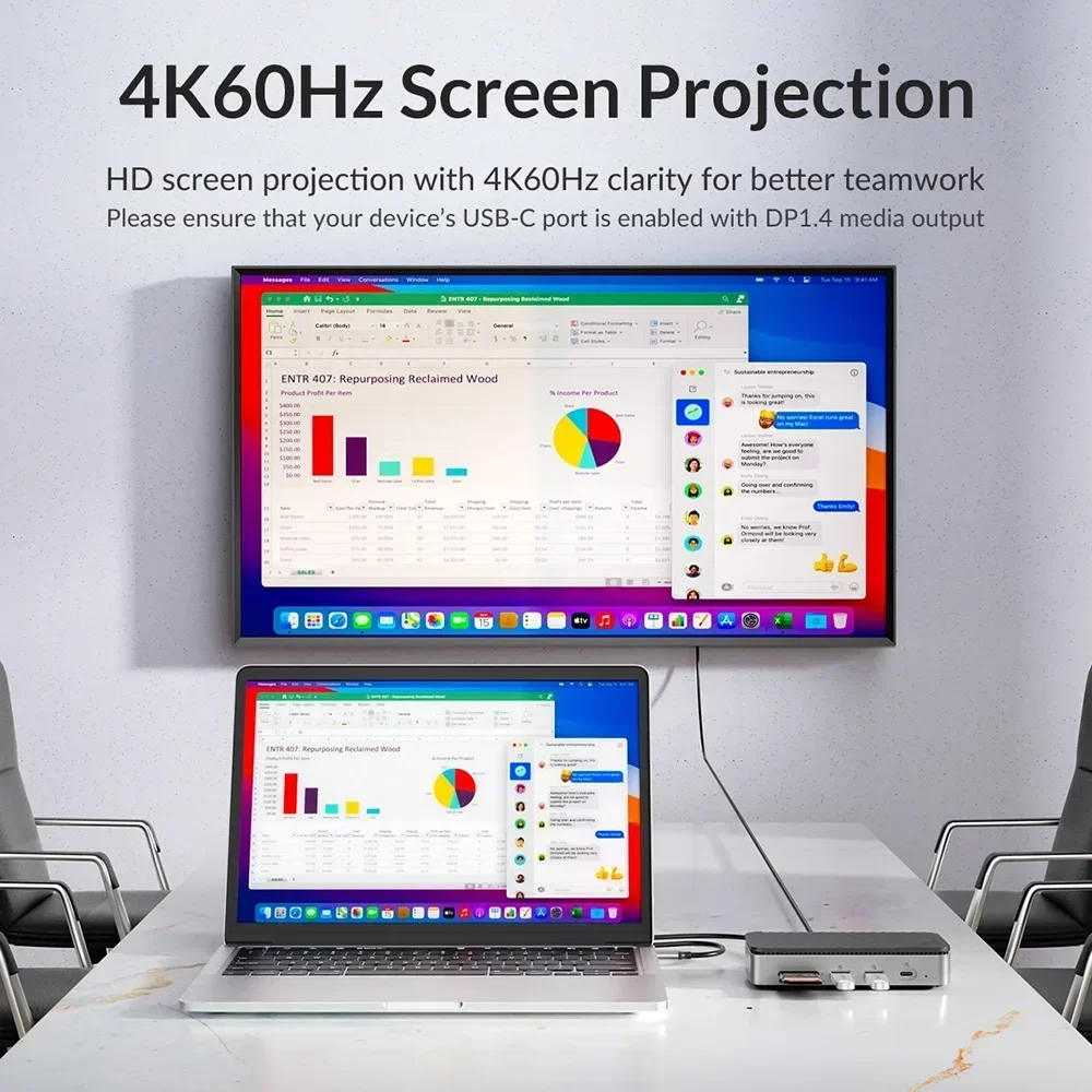 Con esta estación de acoplamiento ORICO, puede reflejar o extender fácilmente computadoras portátiles tipo C, Macbooks, interruptores y plataformas de vapor a pantallas externas con pantallas 4K @ 60Hz. Puede disfrutar de películas con su familia en una pantalla más grande o hacer presentaciones animadas en reuniones.
