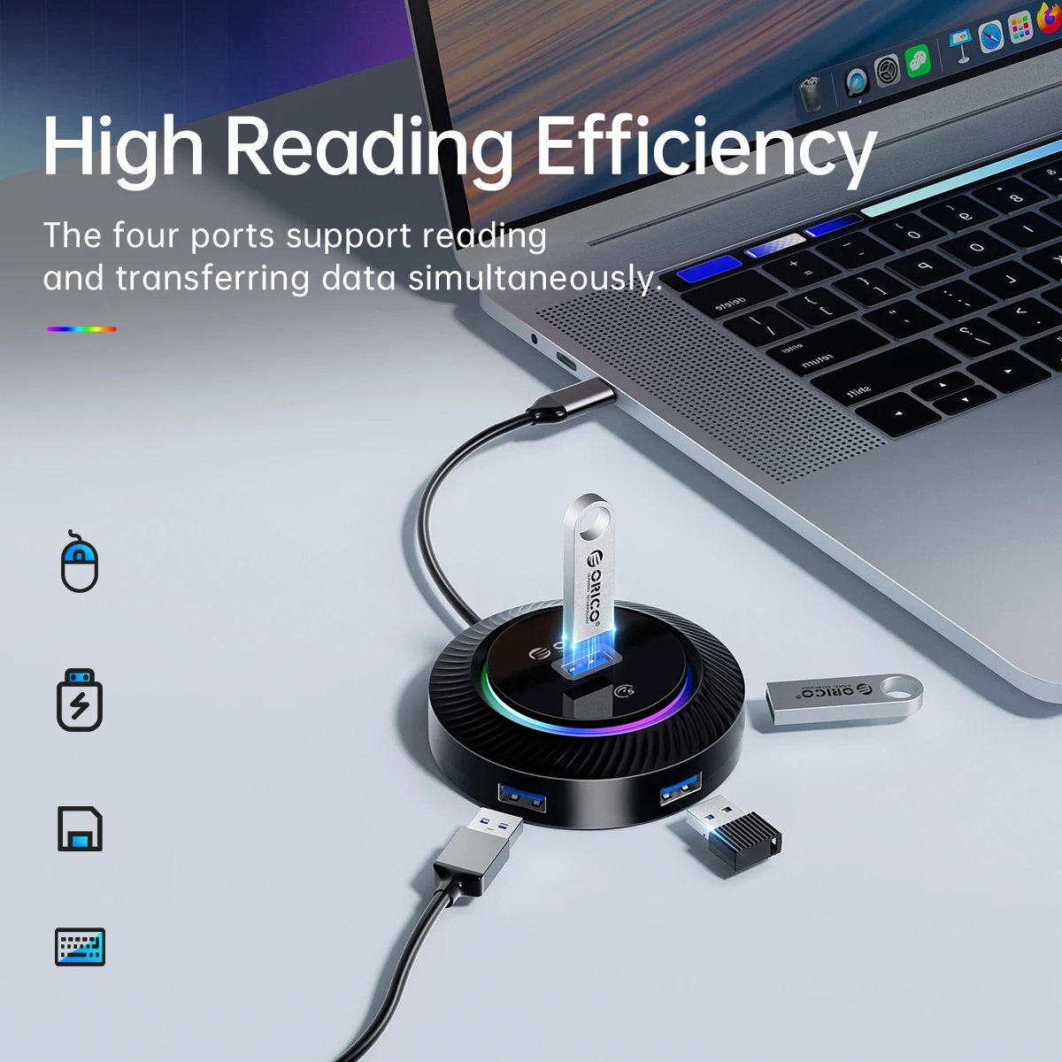 Comprar Orico USB HUB 4 puertos Multi USB C HUB divisor Usb con carga tipo C adaptador OTG ultradelgado para accesorios de ordenador portátil hub