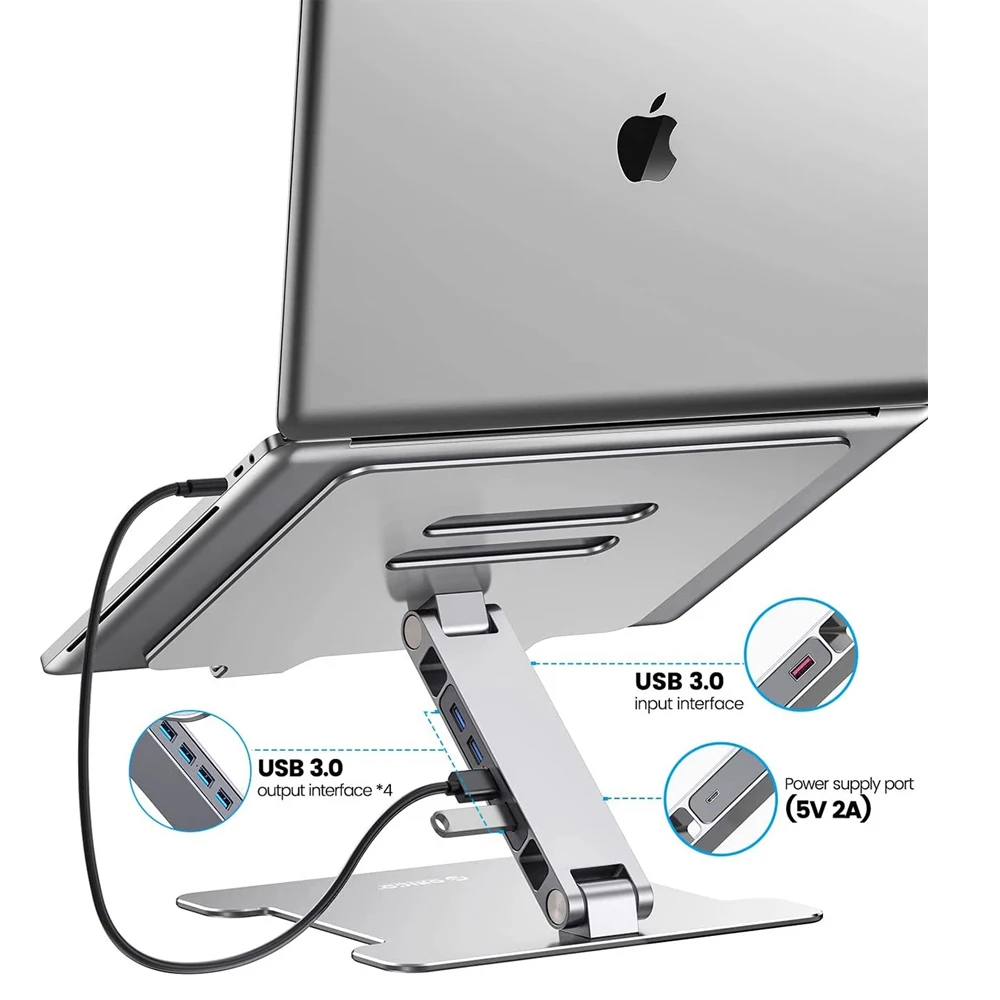 Comprar ORICO USB3.0 soporte plegable para ordenador portátil, escritorio de pie de aluminio, elevador para portátil, accesorios de refrigeración para Macbook Pro
