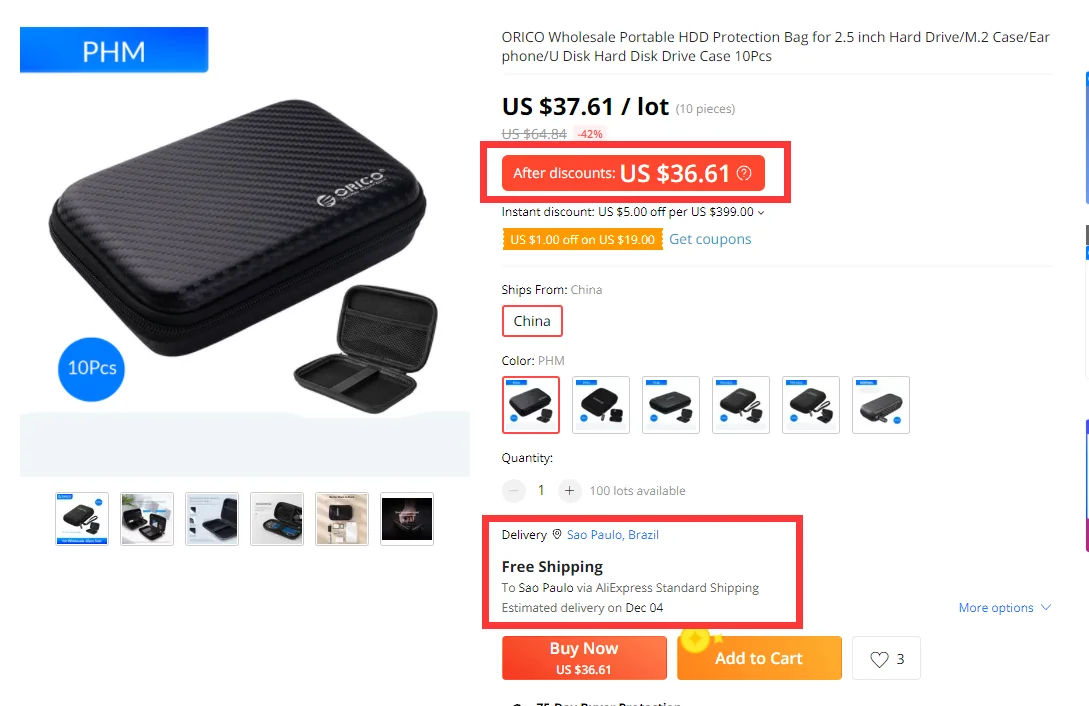Comprar ORICO, venta al por mayor, bolsa de protección HDD portátil para disco duro de 2,5 pulgadas/funda M.2/auriculares/disco U, funda para disco duro, 10 Uds.