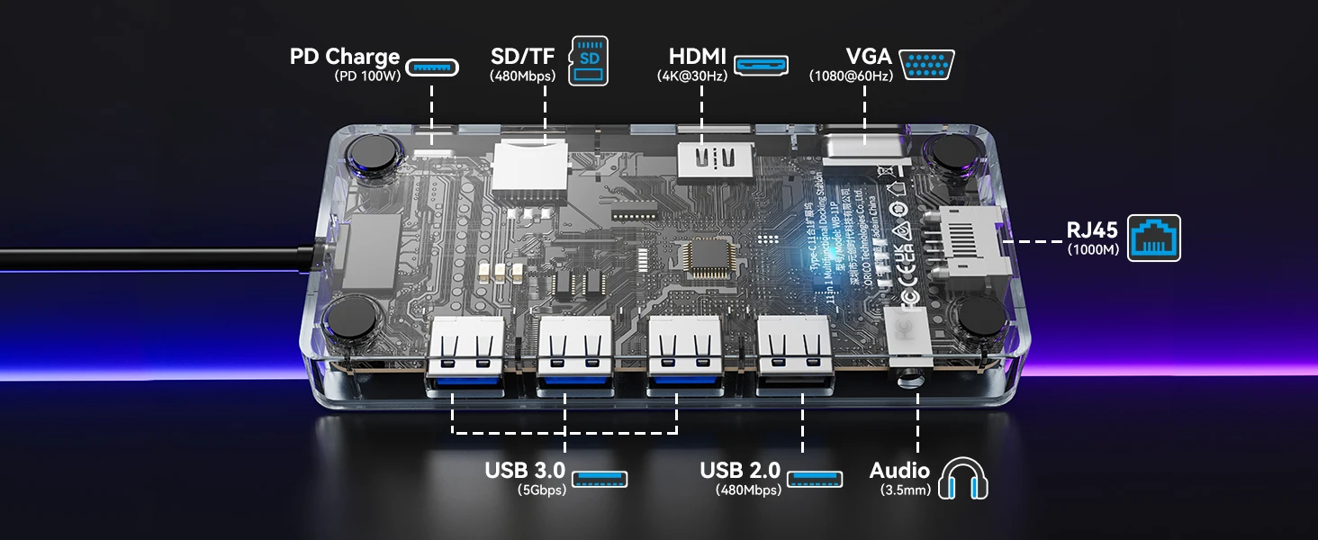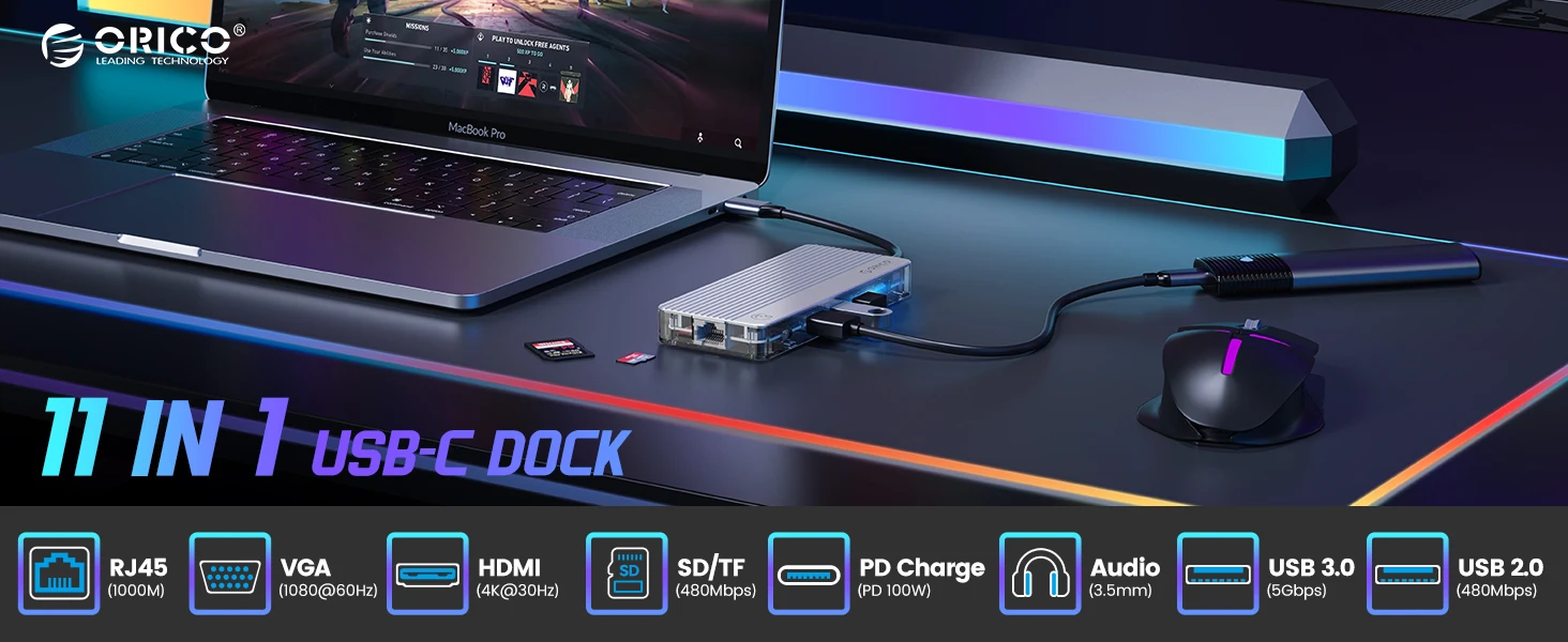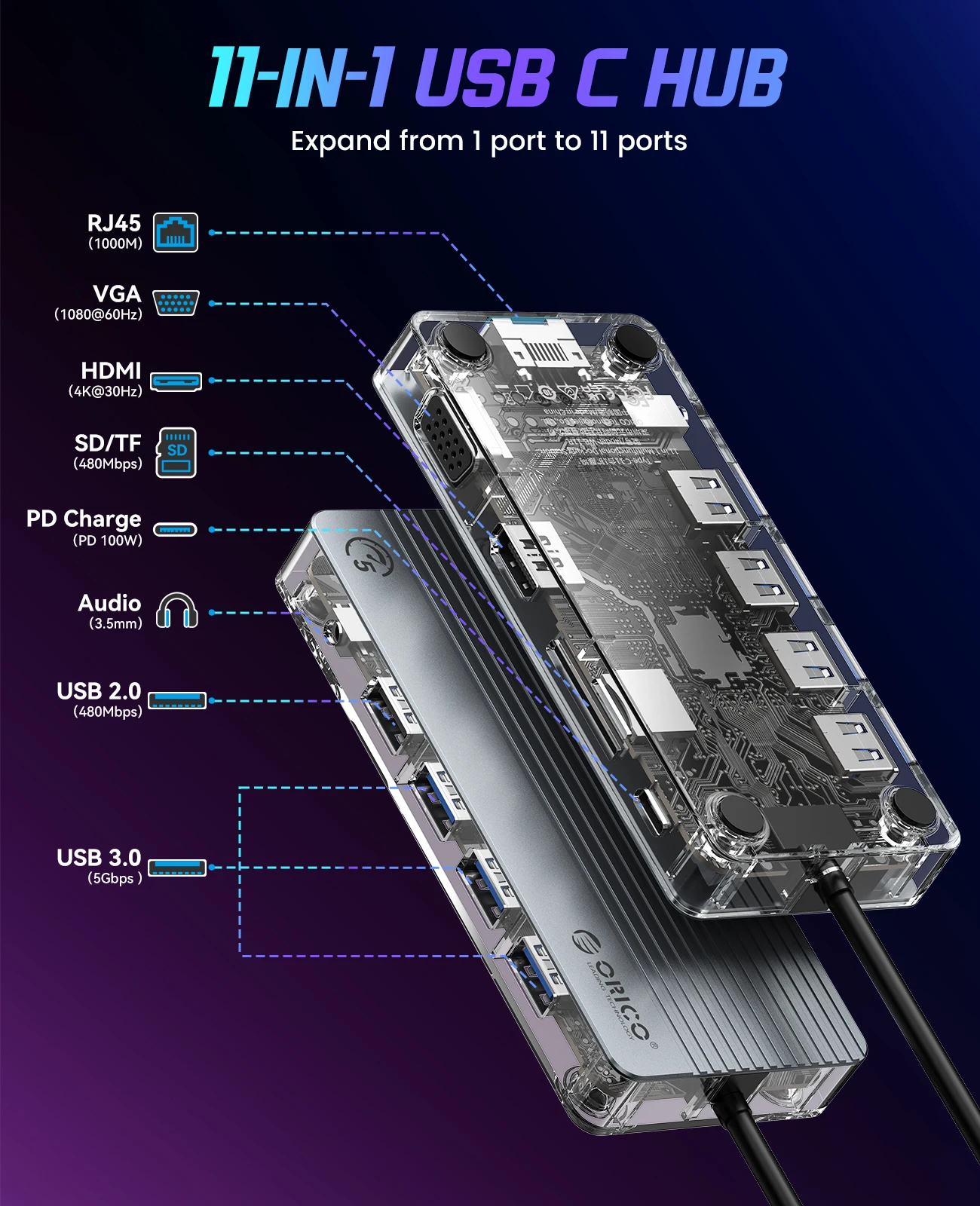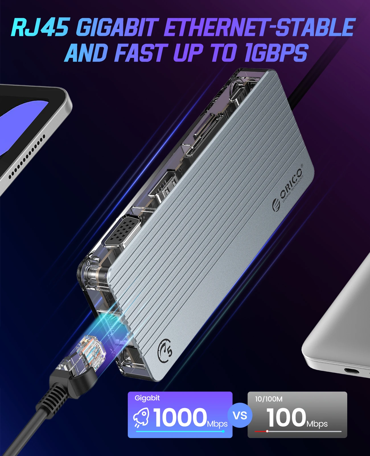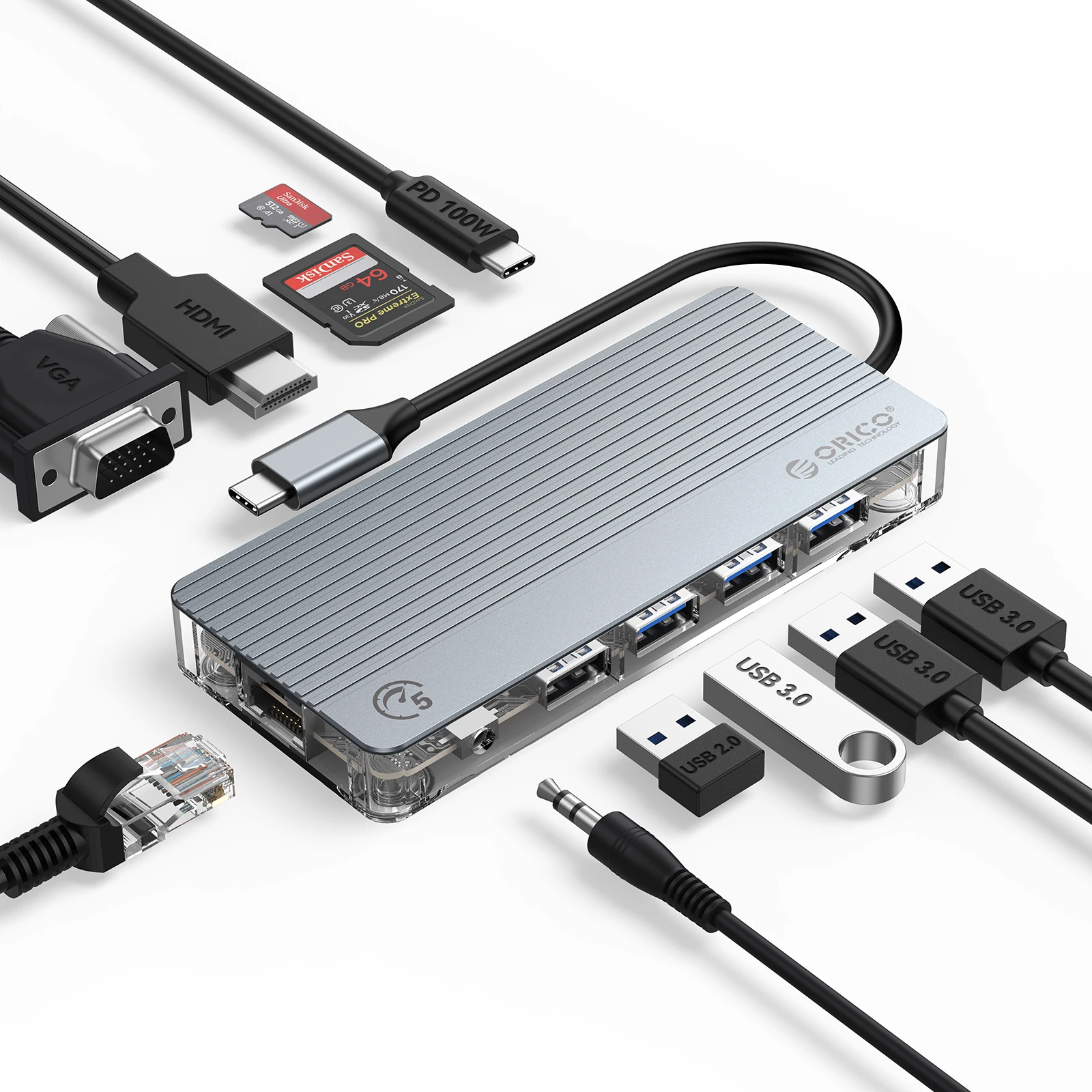 Comprar Orico WB USB Hub tipo C a Multi USB 3,0 PD100W RJ45 divisor para PC MacBook Pro Accesorios