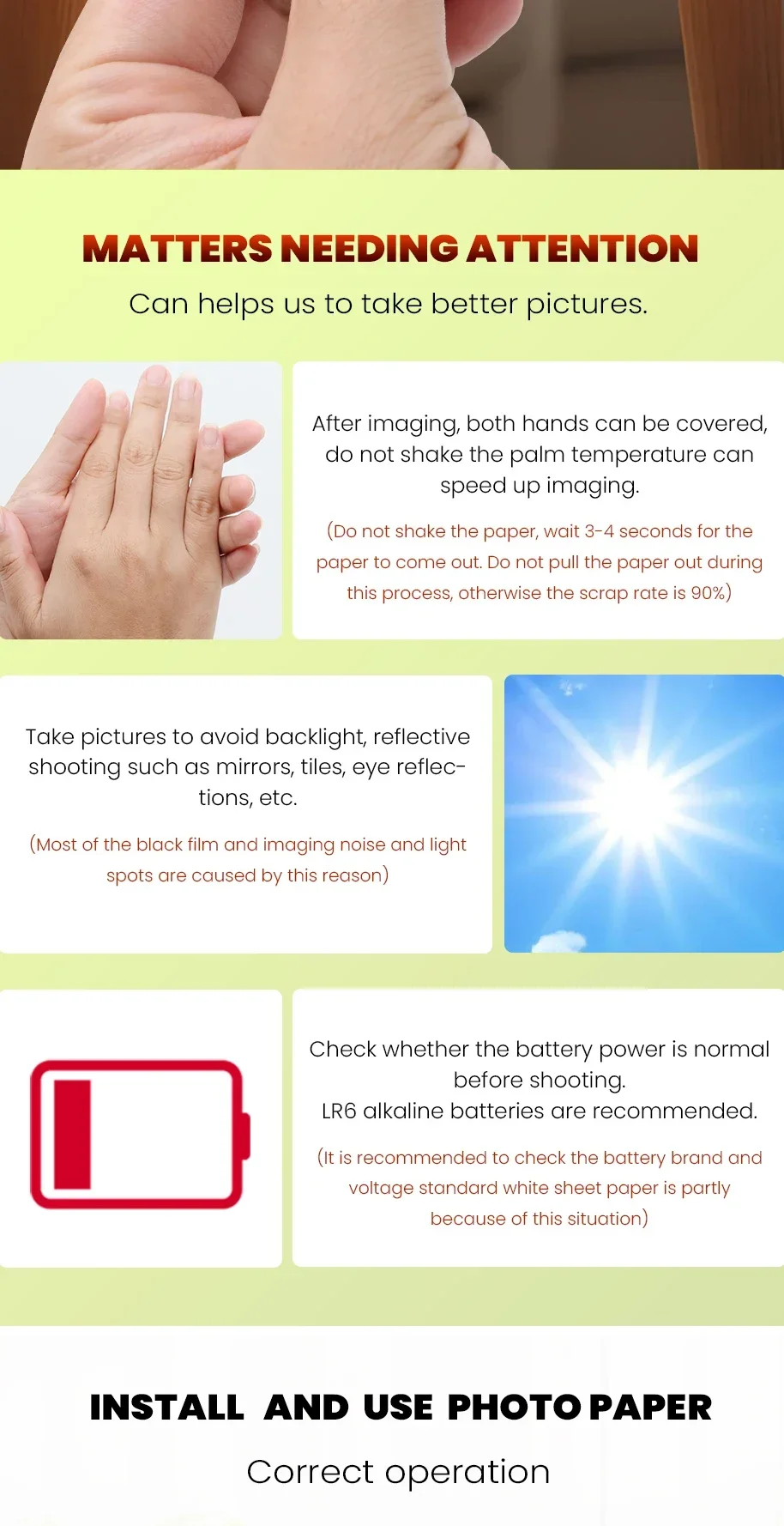 El cartucho de película de cartucho fácil de cargar está diseñado y etiquetado para facilitar la carga y relleno con película para 10 impresiones instantáneas del tamaño de una tarjeta de crédito; Almacenar en condiciones frescas y secas