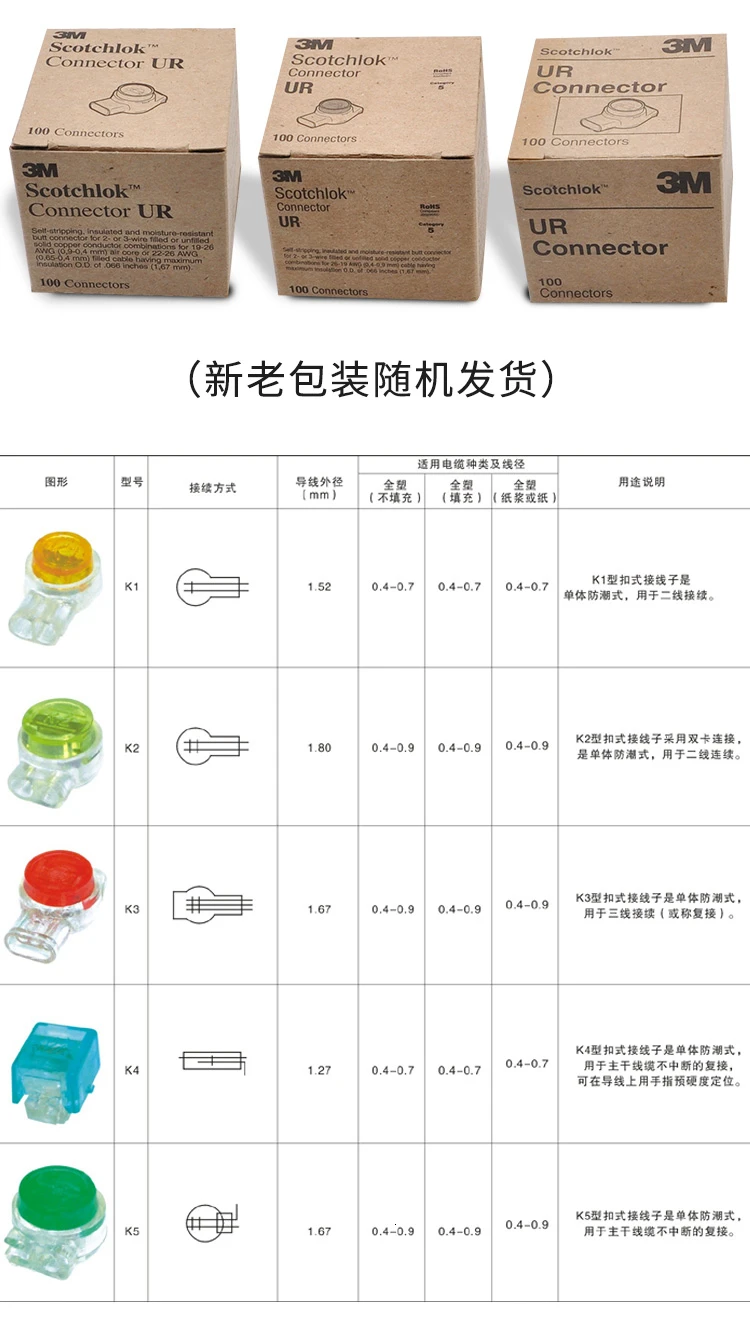Original 3M Scotchlok UR cableado subred Cable telefónico 3 cables Terminal de engarzado doble hoja 3 núcleos Rj11 RJ45 K3 conector