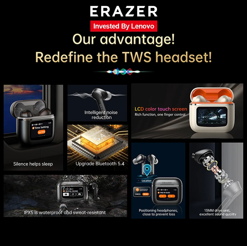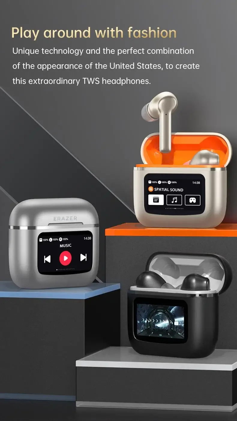 Comprar Original ERAZER XP1 auriculares Bluetooth LCD pantalla a Color inteligente auriculares inalámbricos pantalla táctil idioma Global