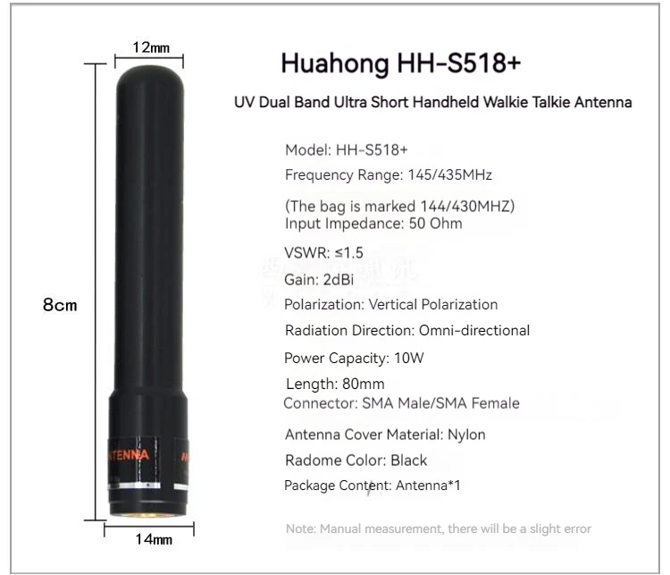 Comprar Original HH-S518 + antena Walkie Talkie de mano 145/435MH UV banda Dual Ultra corta antena Omni de alta ganancia SMA macho/hembra