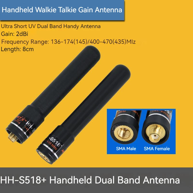 Comprar Original HH-S518 + antena Walkie Talkie de mano 145/435MH UV banda Dual Ultra corta antena Omni de alta ganancia SMA macho/hembra