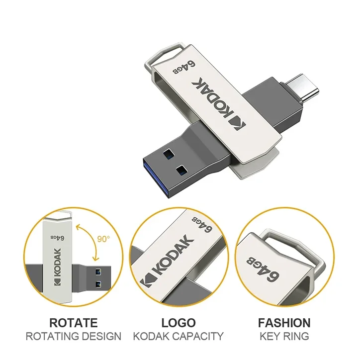 • Alta velocidad USB 3.2 :Esta llave de estado sólido Kodak ofrece una alta velocidad gracias a la interfaz USB 3.2, permitiendo un transferencia de datos rápida y eficiente.