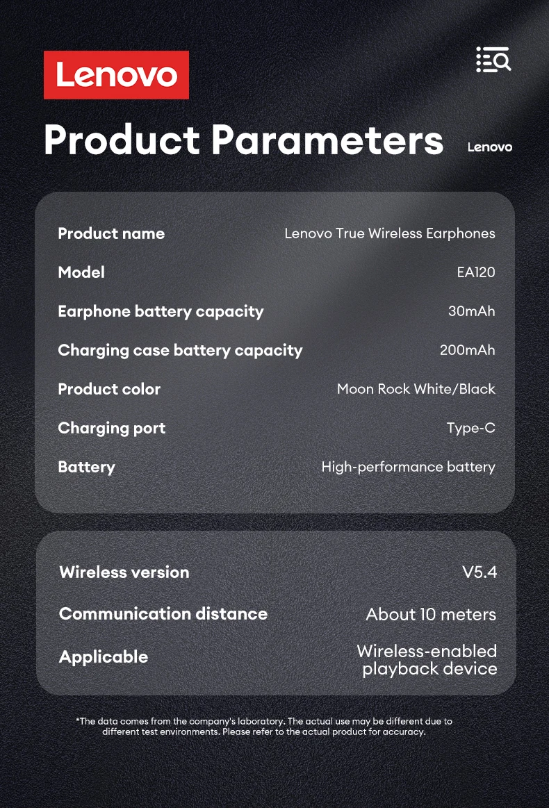 Comprar Original Lenovo EA120 nueva moda auriculares Bluetooth inalámbricos verdaderos V5.4 HiFi auriculares de alta calidad de sonido auriculares de larga duración