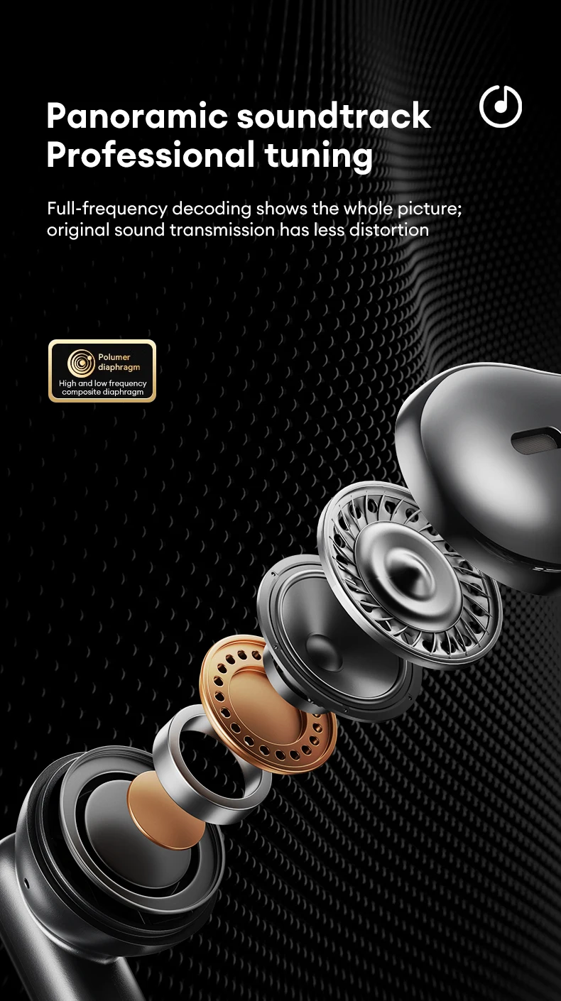 Calidad de sonido de alta resolución de nivel HIFlDiseño ergonómicoBluetooth V5.4Modo dualDoble decodificaciónMúsica con duración de batería de 24 horas