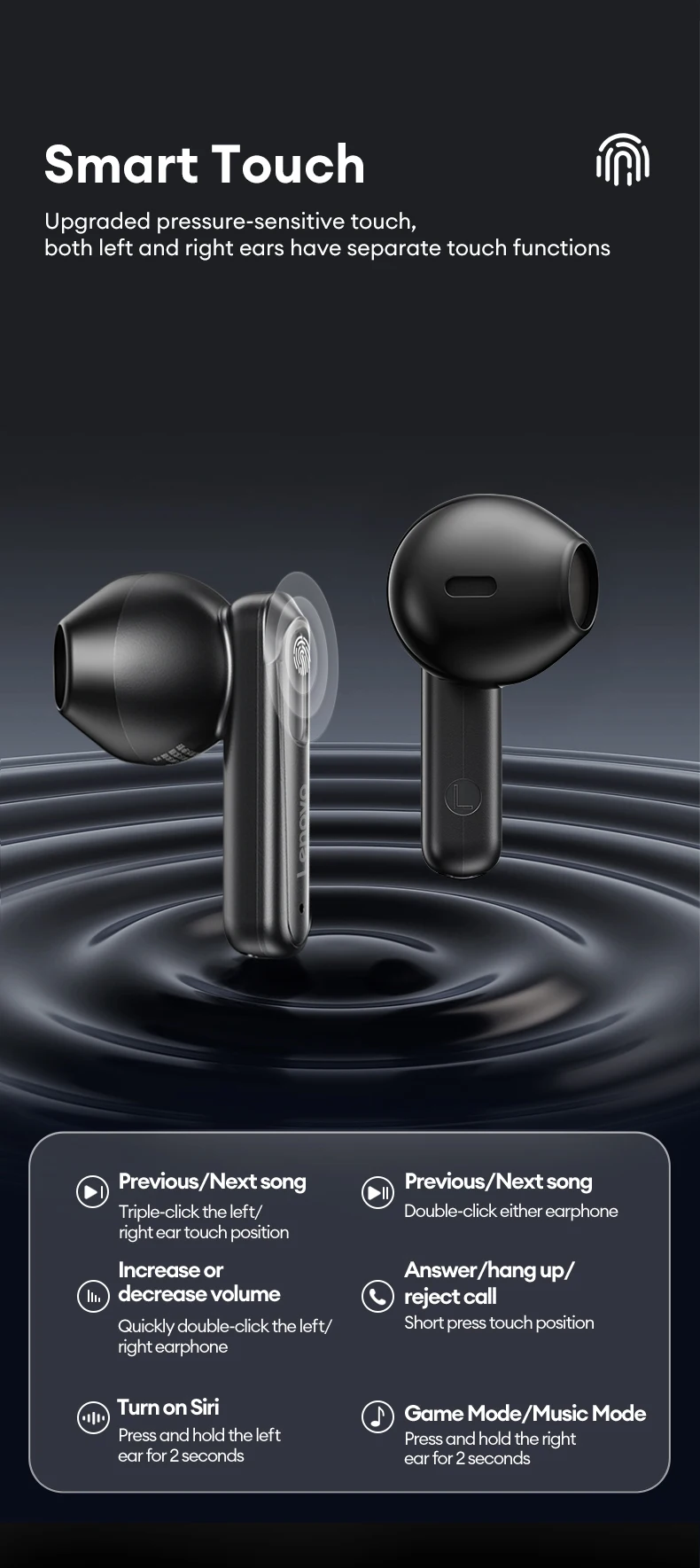 Toque sensible a la presión mejorado, tanto el oído izquierdo como el derecho tienen funciones táctiles separadas