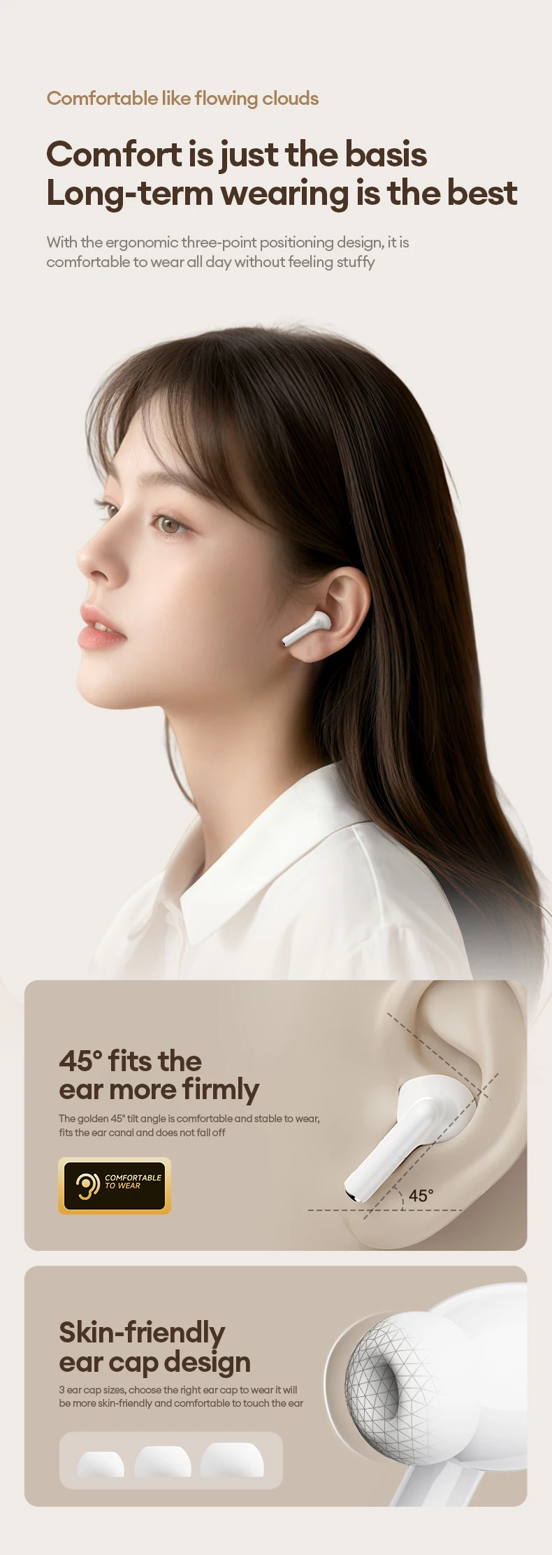 [Comodidad ergonómica de ajuste triple]: 3 tamaños de puntas de silicona líquida que no dañan la piel se adaptan a cualquier canal auditivo: comodidad durante todo el día, presión cero, seguras incluso durante los entrenamientos.
