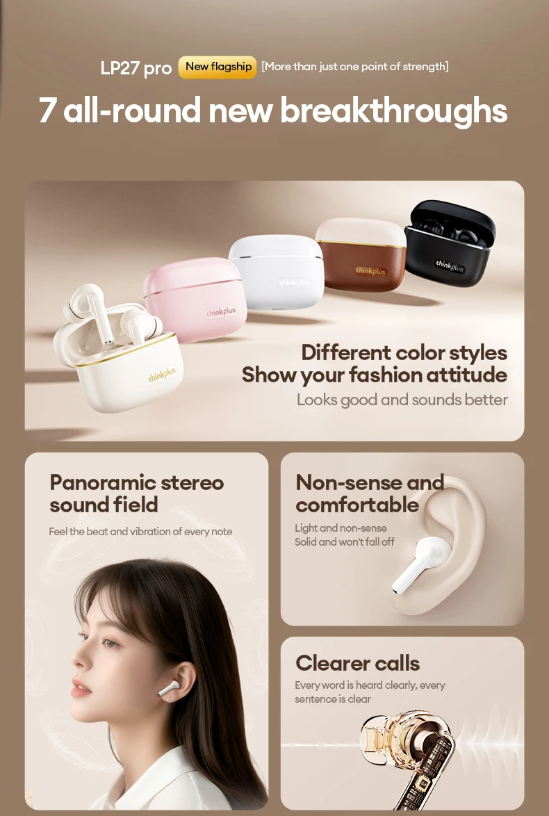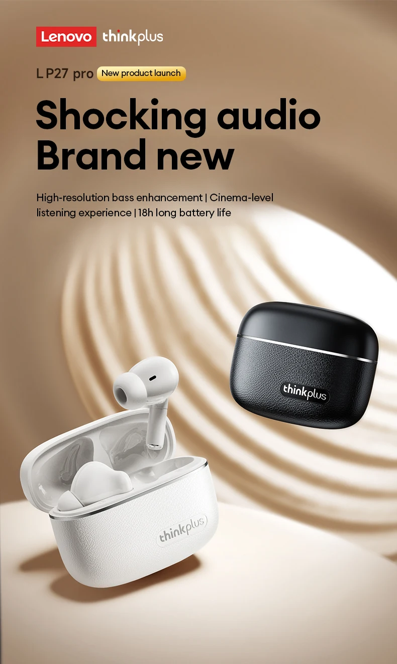 Original LenovoLP27 PRO auricular inalámbrico Bluetooth 5,4 juego llamada de baja latencia cancelación de ruido