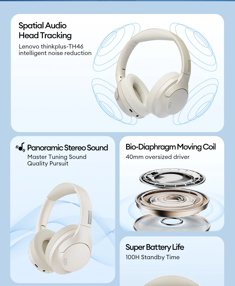 Fusión de moda y funcionalidad- El Lenovo Th46 ofrece una combinación perfecta de diseño elegante y funcionalidad práctica, lo que lo convierte en la elección perfecta para los entusiastas del audio moderno.
