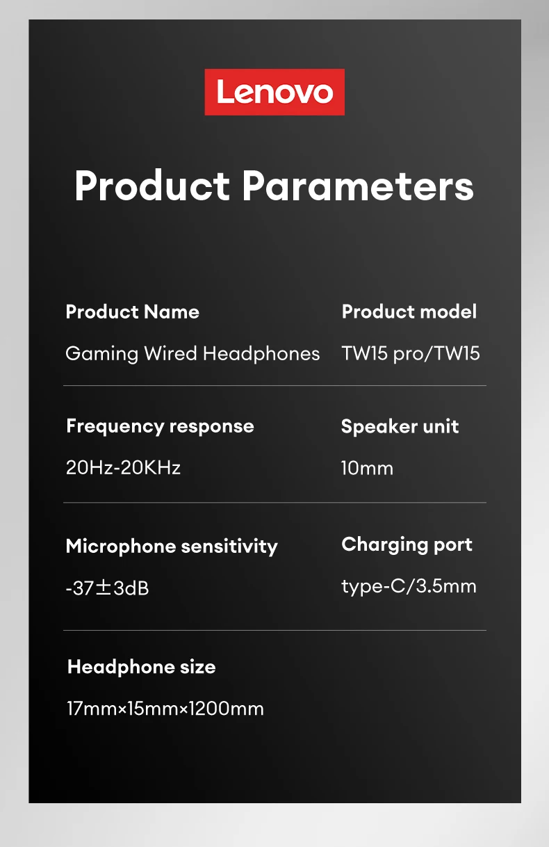 ⬤Auriculares para juegos con cable Lenovo TW15, adecuados para todas las personas, adecuados para escenas: juegos, deportes y música