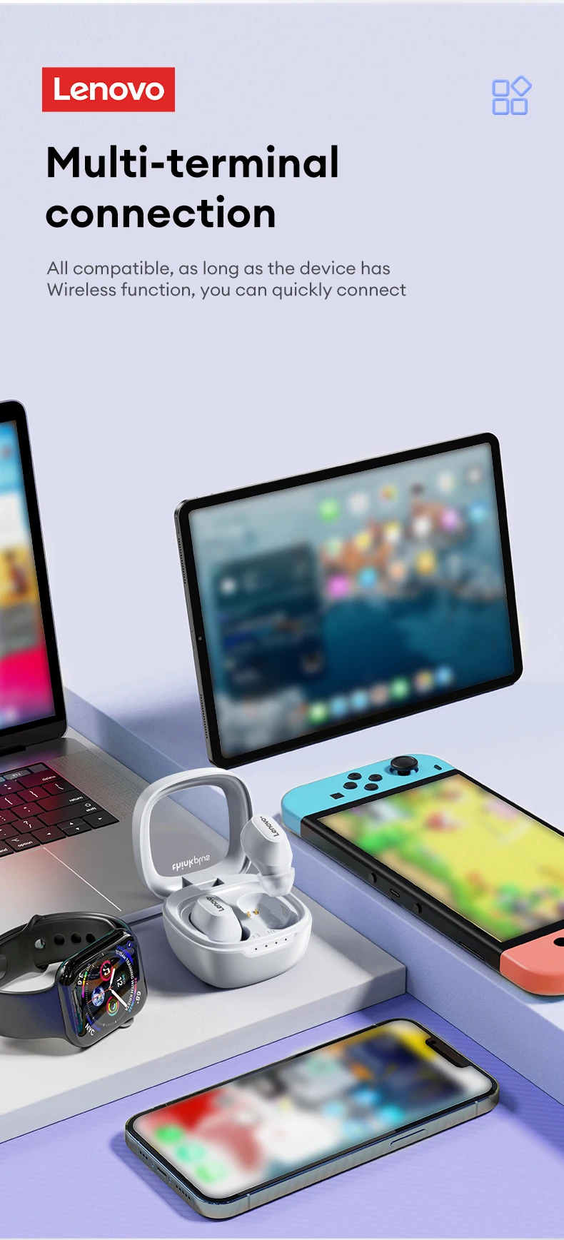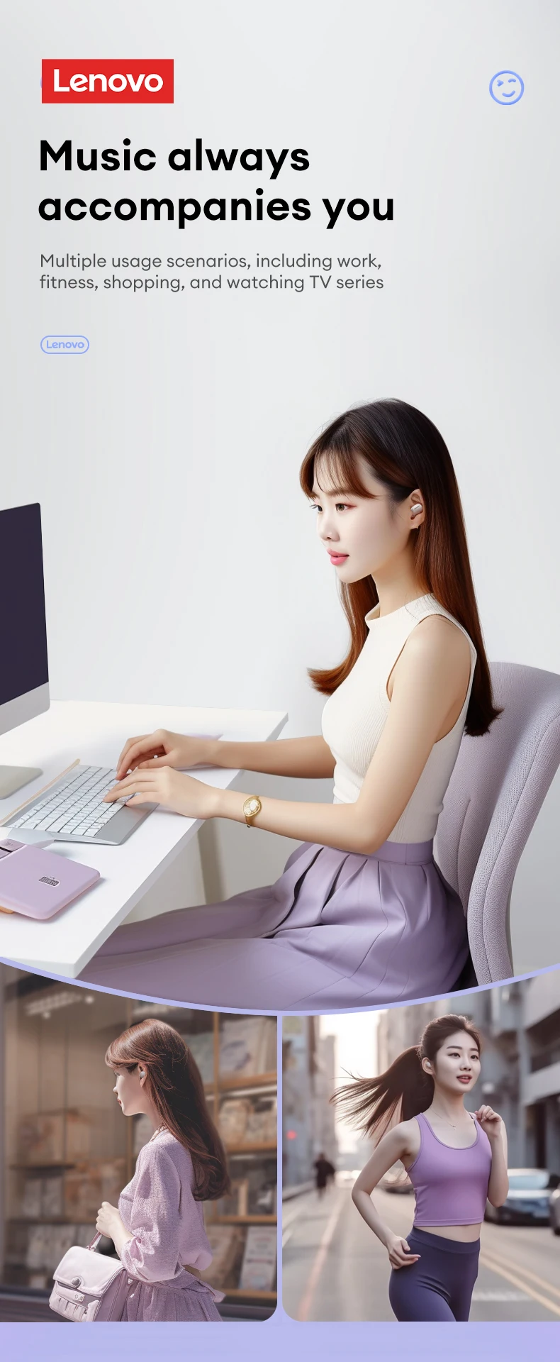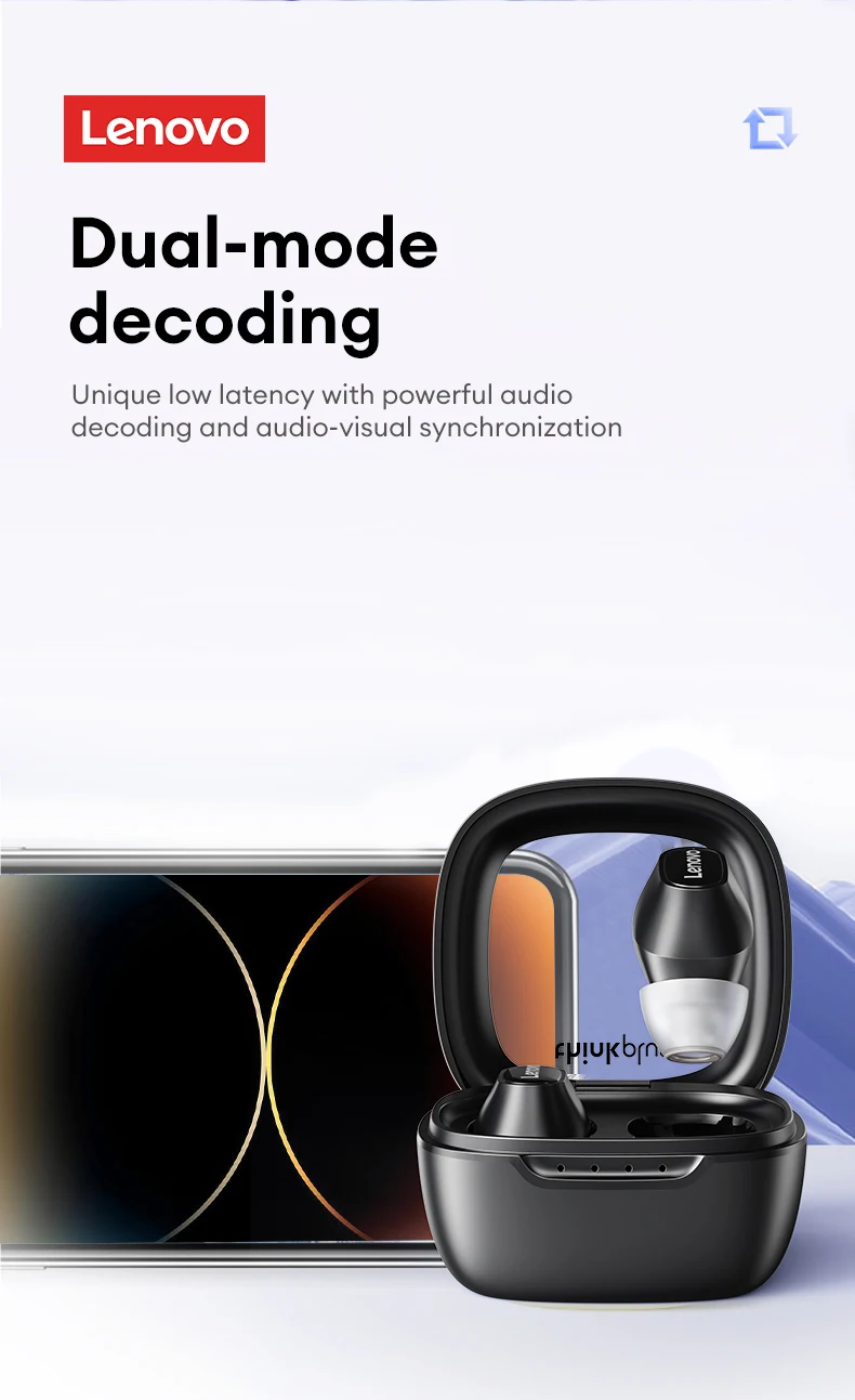 Auriculares de música de último diseño de Lenovo, baja latencia, cómodos de usar, decodificación de audio AAC/SBC HD