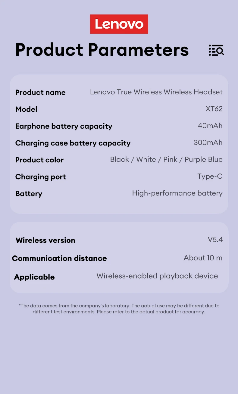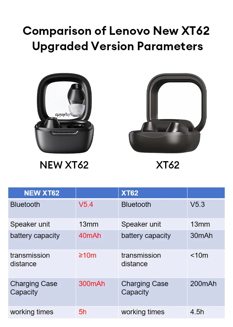 Lenovo XT62 Nuevos auriculares TWS inalámbricos Bluetooth V5.3