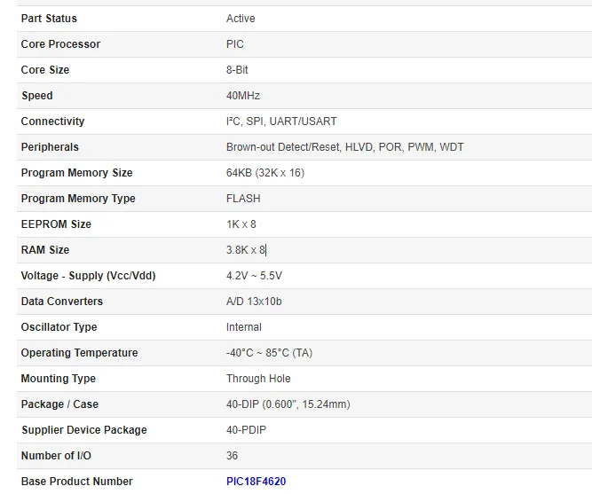 PIC18F4620-I/P PIC18F452-I/P PIC18F4550-I/P PIC16F877A-I/P