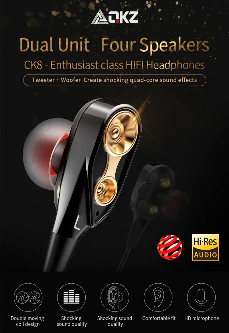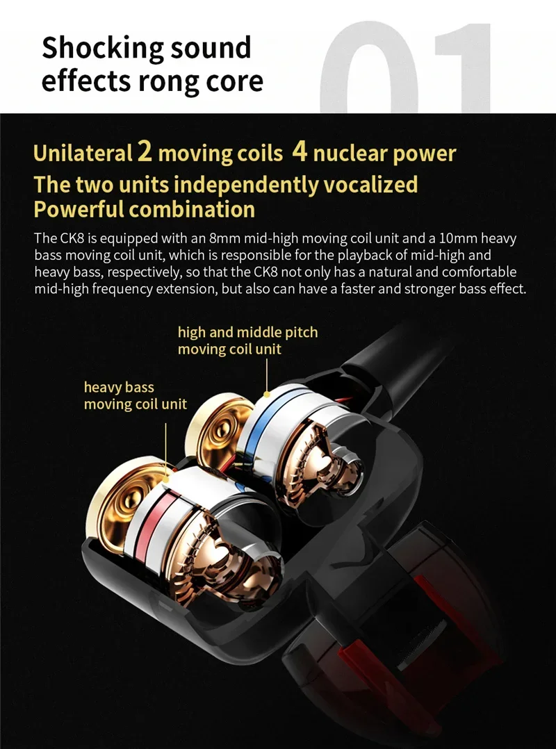 • High-Quality Copper Driver :The Original qKZ ck8 4D HiFi wired earphone is equipped with a high-quality copper driver, ensuring superior sound quality and clarity for an immersive audio experience.