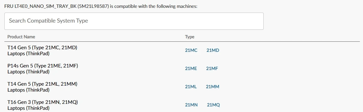 Original Thinkpad T14 P14s Gen5 T16 Gen3 portátil NANO SIM TRAY 5M21L98587