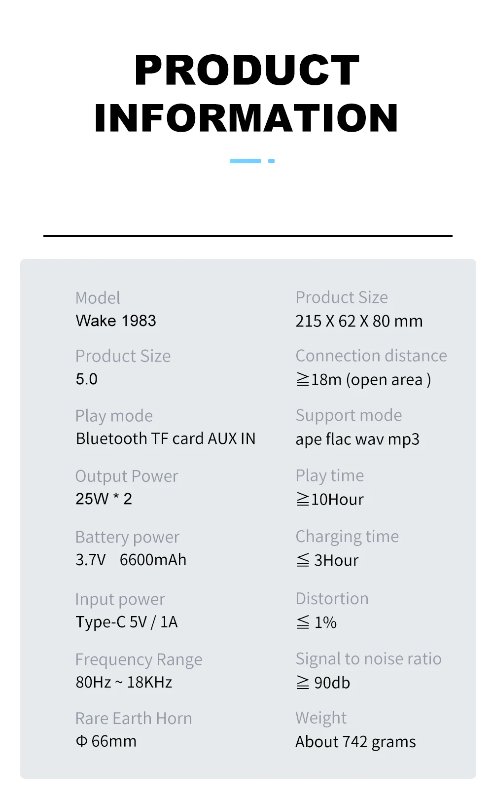 Respuesta de frecuencia: 100hz-20kHZ