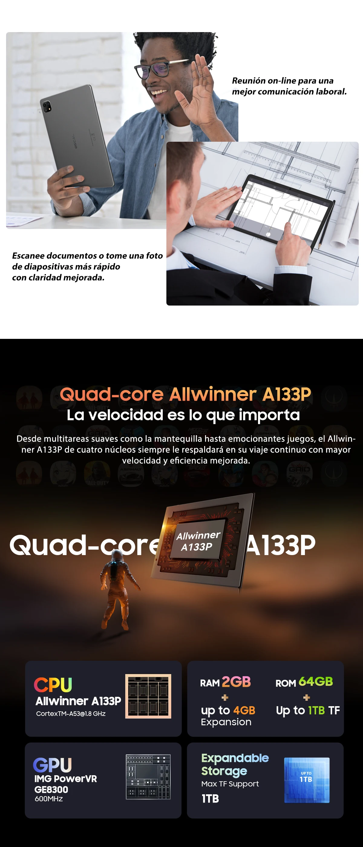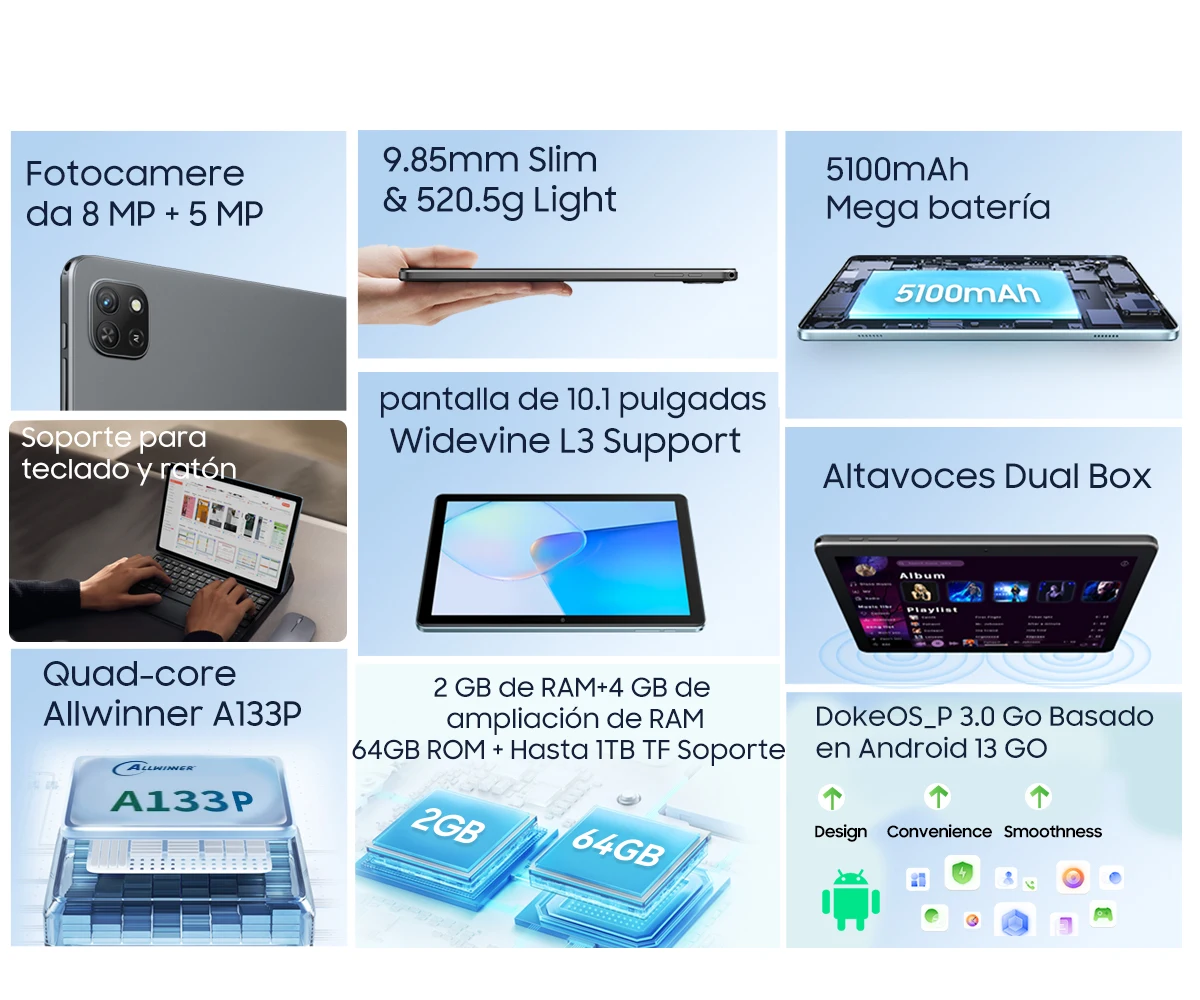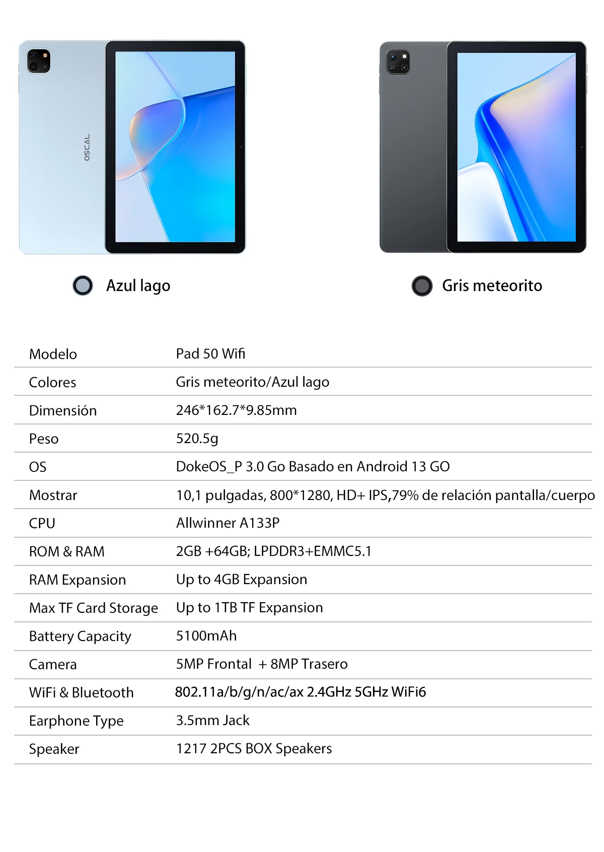 Comprar OSCAL Pad 50 WIFI Tablet 10,1 ''pantalla HD 2GB 64GB 5100mAh A133P Quad Core altavoz Dual Android 13 tabletas WIFI