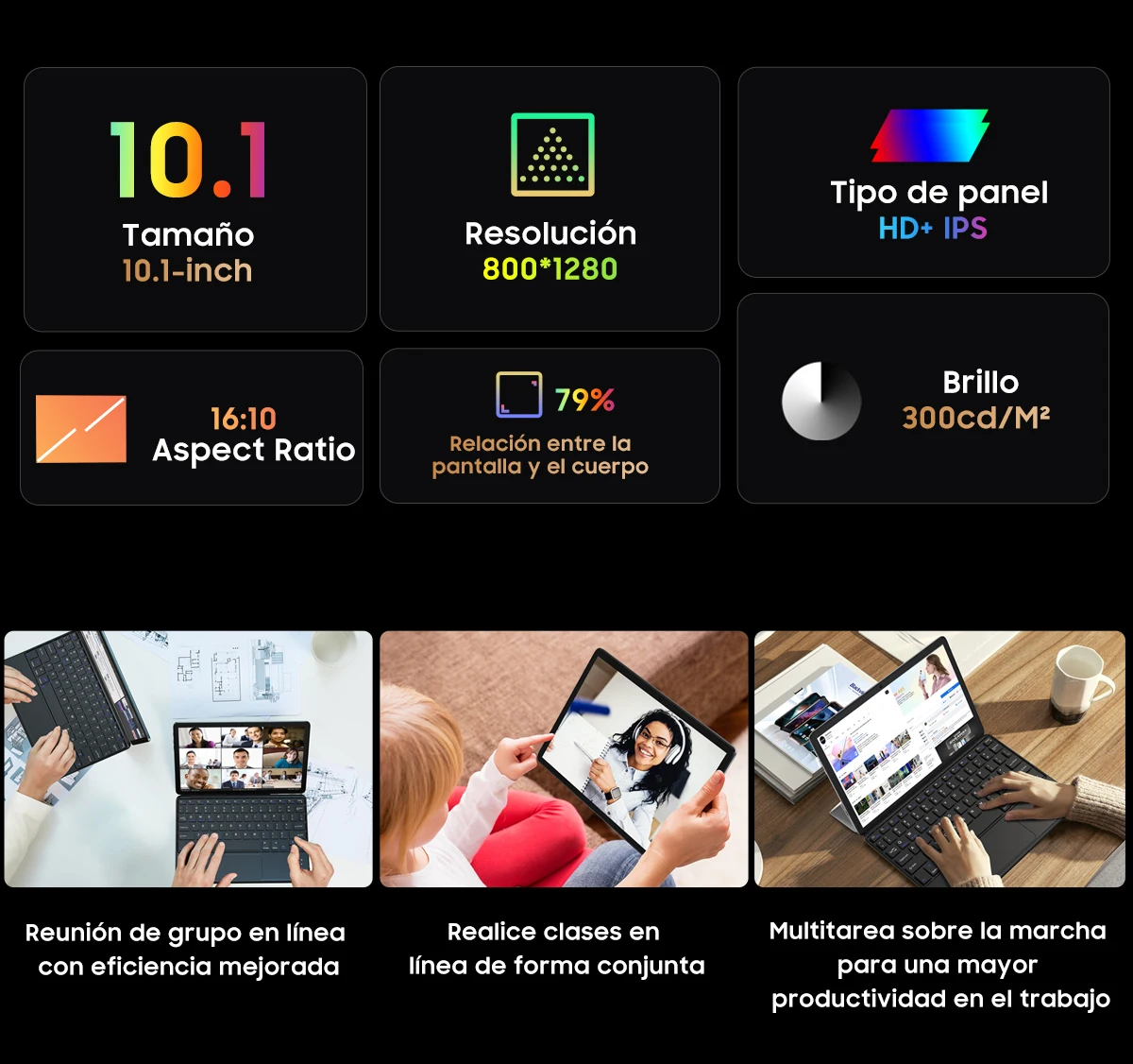 Pantalla:Pantalla HD + IPS 10,1*1280 de 800 pulgadas