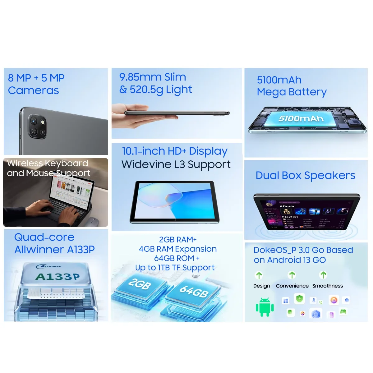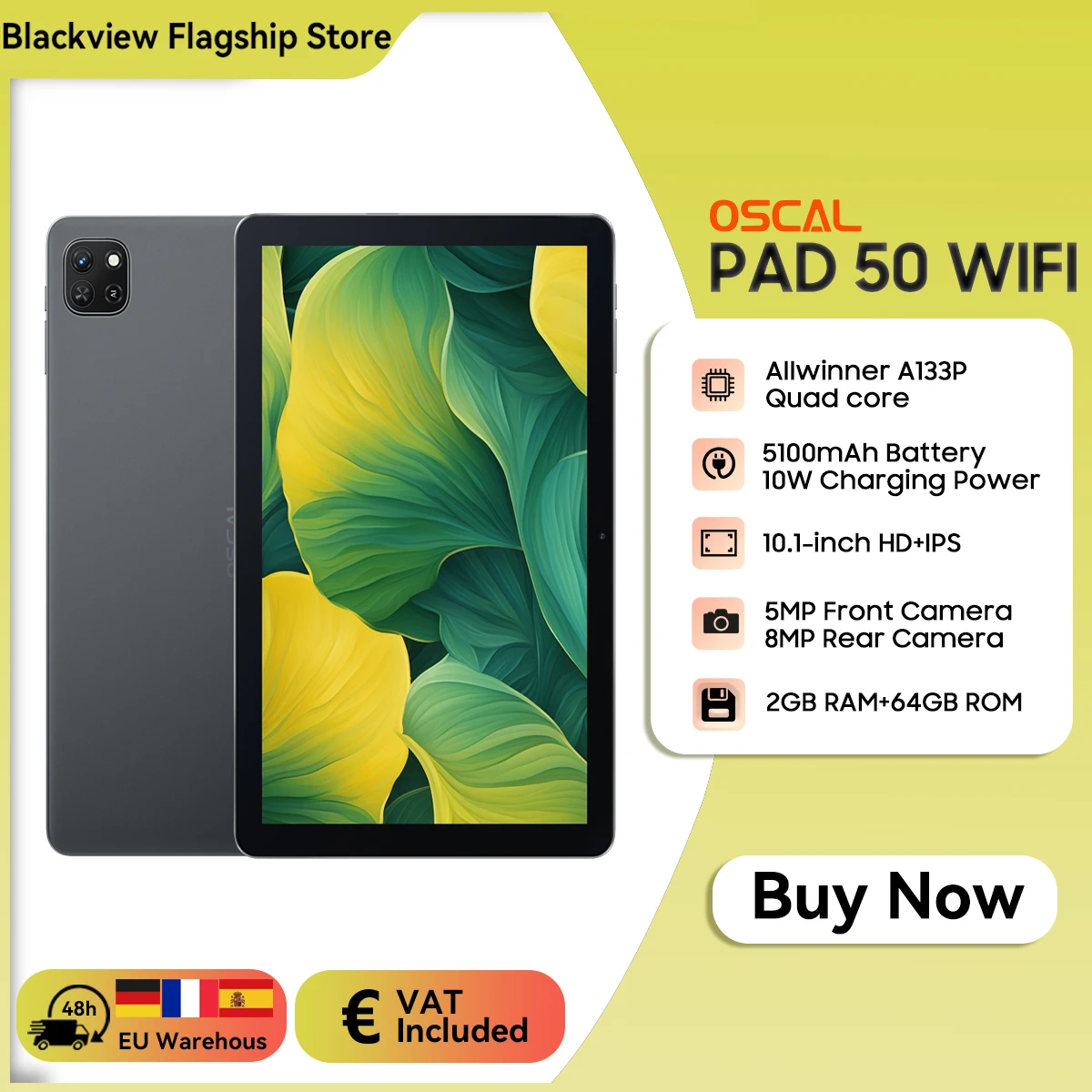 Comprar OSCAL Pad 50 WIFI Tablet 10,1 ''pantalla HD 2GB 64GB 5100mAh A133P Quad Core altavoz Dual Android 13 tabletas WIFI