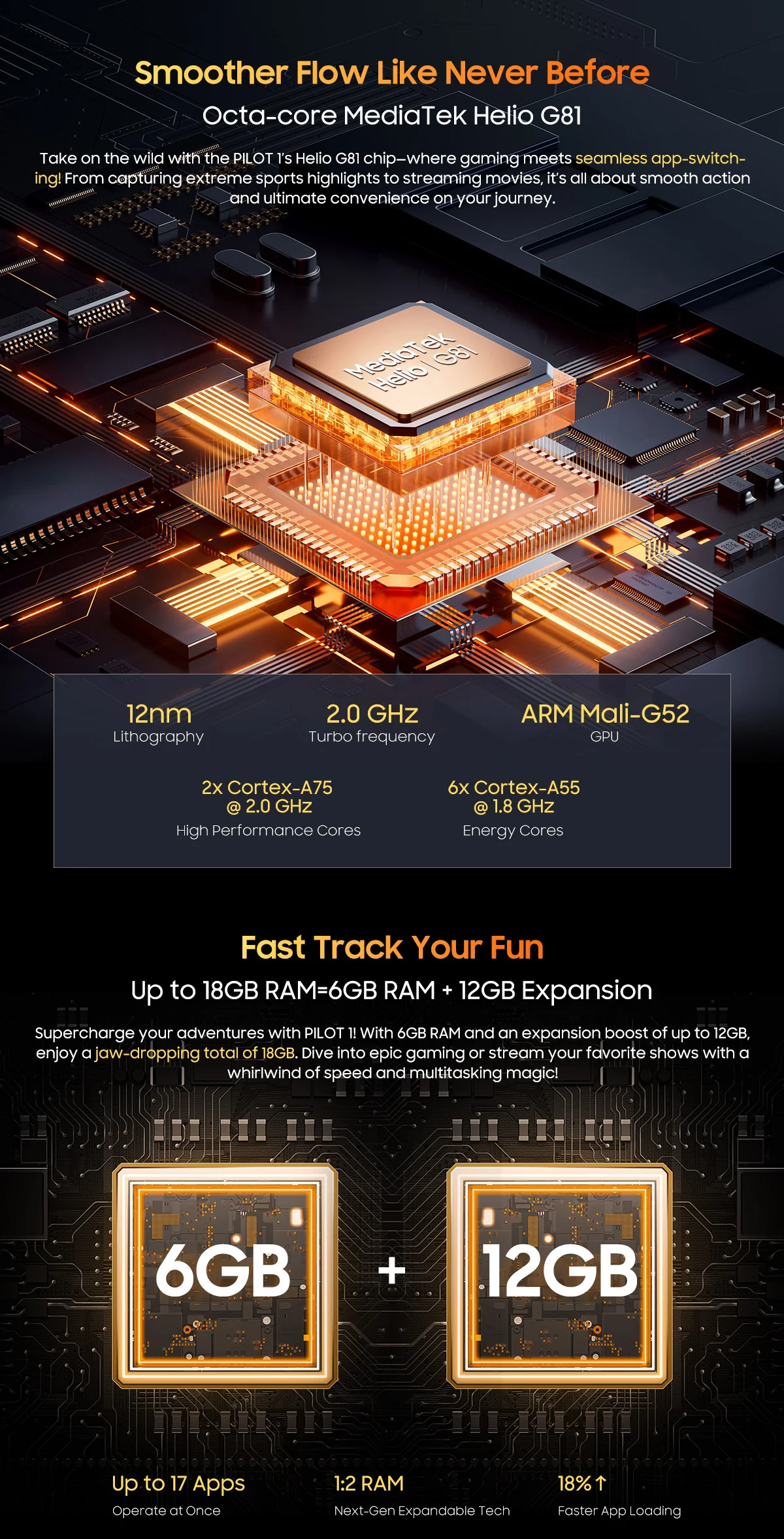 CPU:MTK Helio G81, núcleo Octa, 2*[email protected]+6*A55@1,8GHz