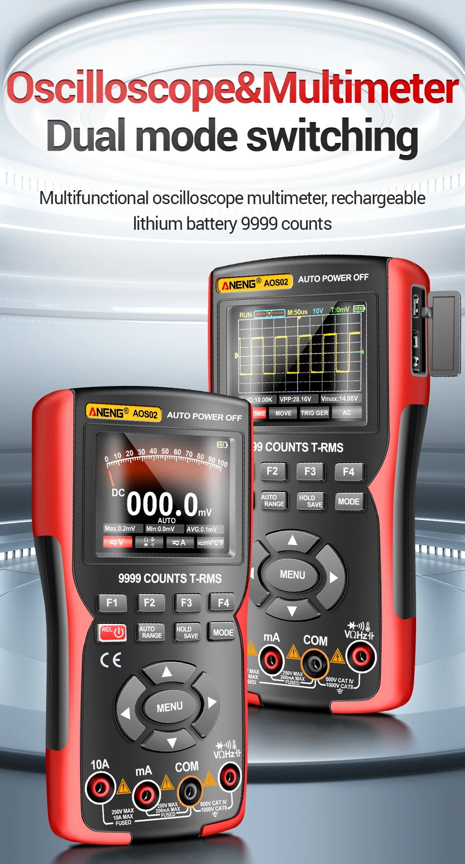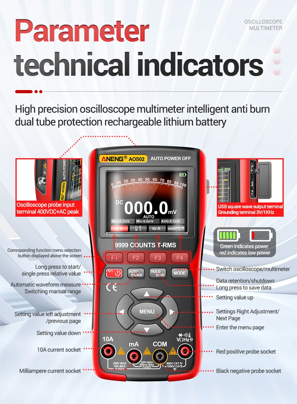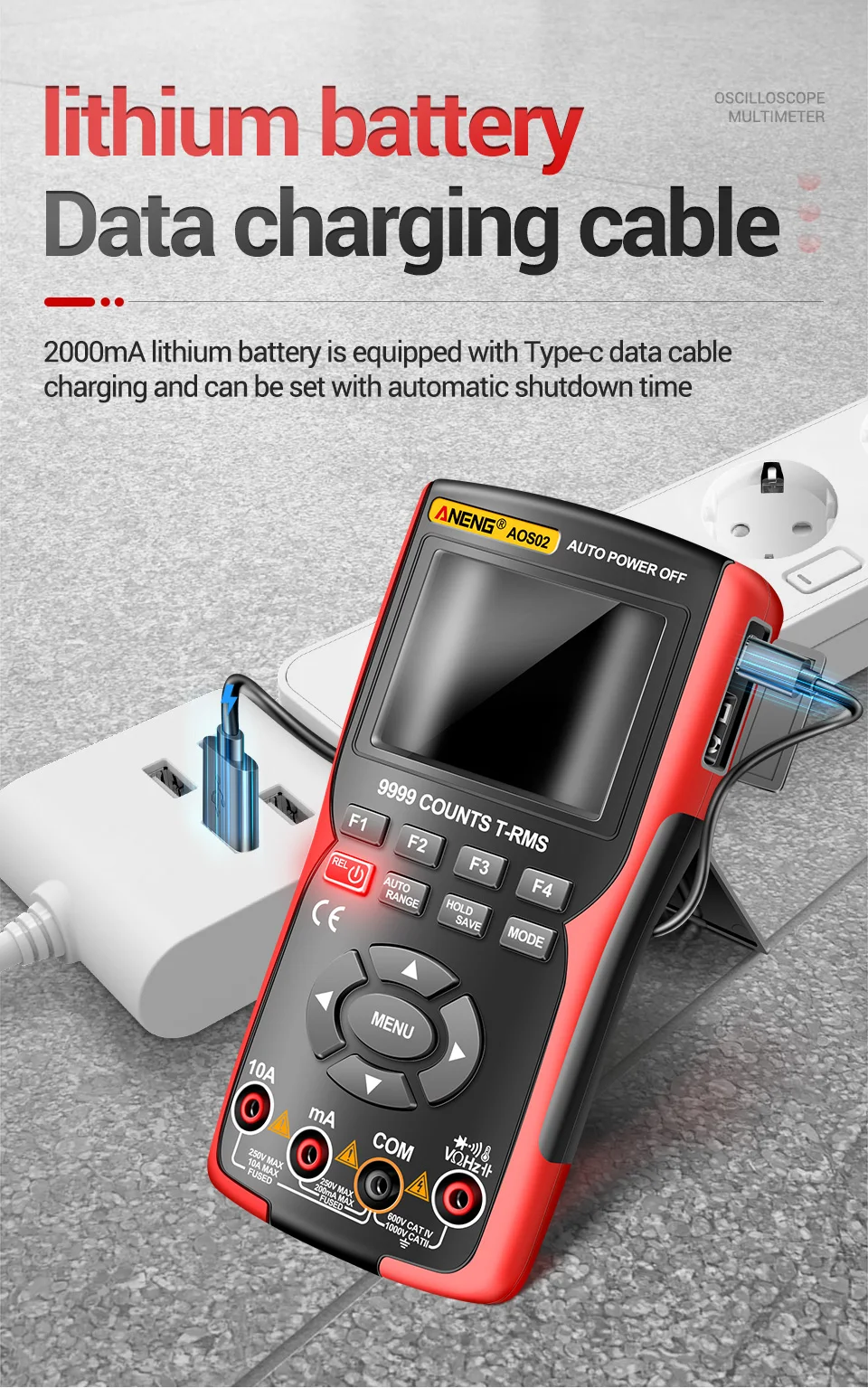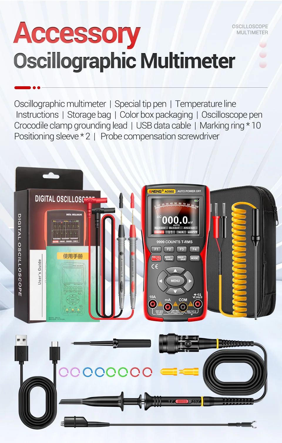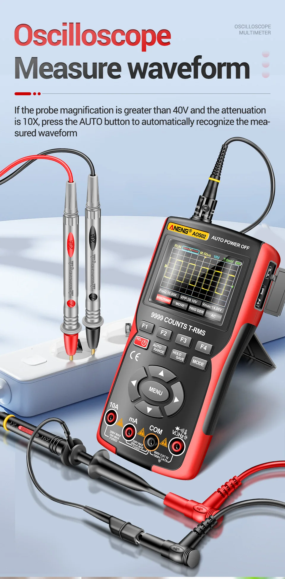 Kit de multímetro de osciloscopio ANENG AOS02, ancho de banda de 10MHz, 48MS/s, muestra de alcance portátil, captura de forma de onda DIY, herramientas de reparación de automóviles DIY