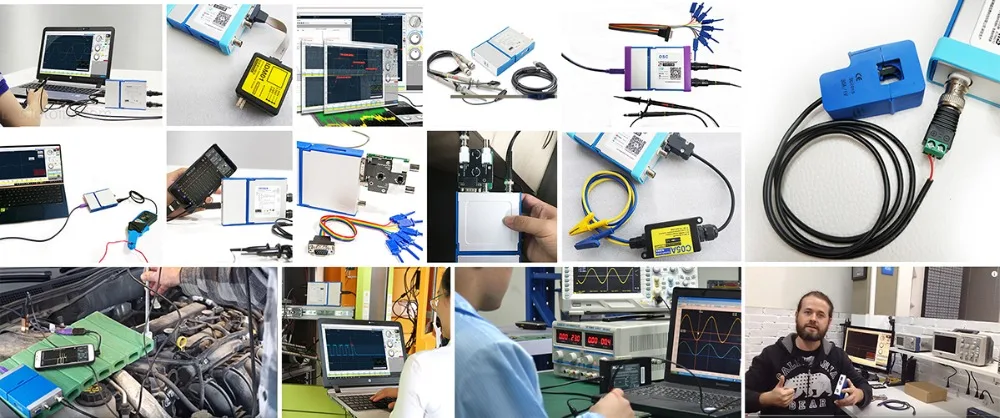 In the above picture, we will see serial port decoding, X_Y drawing, carrier amplification, multi-point automatic measurement, analog input and logic analysis, printing and FFT of the Windows Software Application, and the working scene of the data logger. This product is recommended for hardware circuit development and measurement, teaching equipment, on-site commissioning, encoder inspection, vehicle maintenance, automated inspection equipment, power ripple testing, solar system inspection.