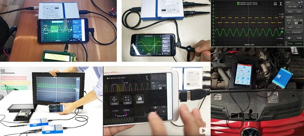 With OSC482M PC-based/smartphone-based oscilloscope, you can use it on a windows computer or an Android smartphone/tablet. Whenever you need an oscilloscope, you can just take it from pocket and plug to coumputer/smarphone by an USB cable, then you have a complete oscilloscope measuring system.