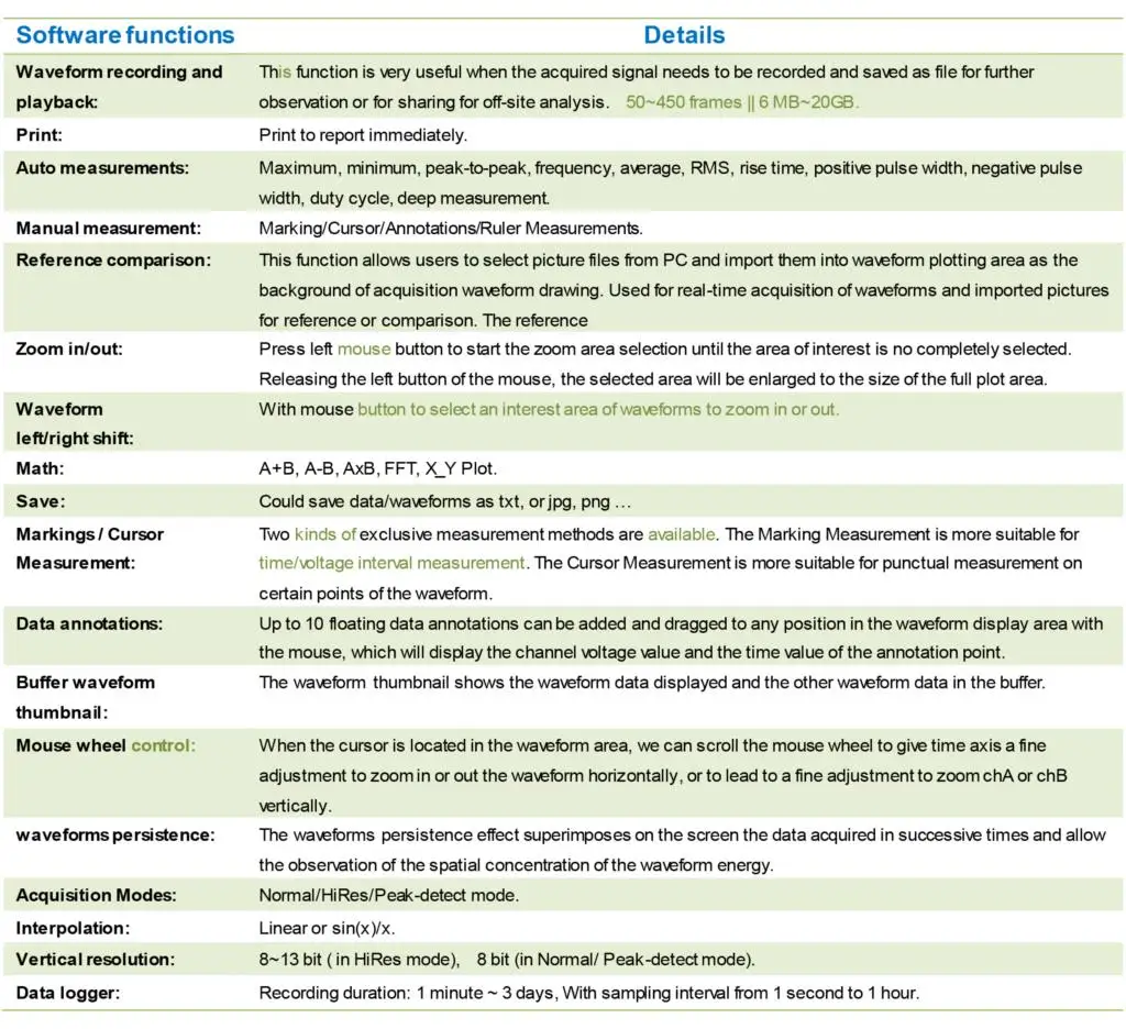 The USB oscilloscope and the required accessories( including extension modules and standard accessories) may be different according to your different purchase: