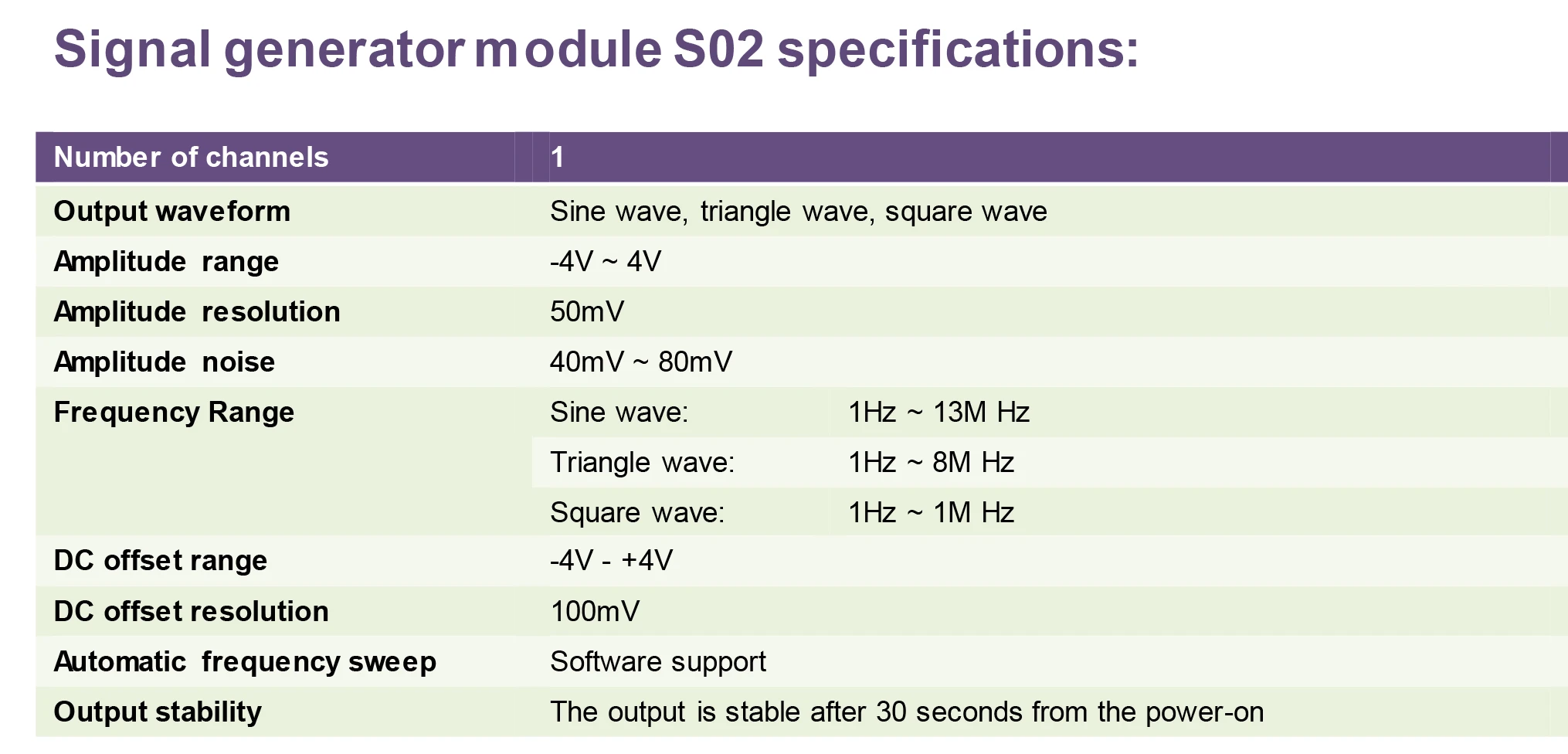 let's take a look at the product hardware interface for extensions: The open DE-15 hardware interface can provide digital power as well as analog power, GPIO ports and analog input channels as shown below. This interface an be used as a standard access for signal generator modules or logic analyzer modules. Although these two modules can be plug and play in frequent use, it is recommended to connect the module after the device is powered off.