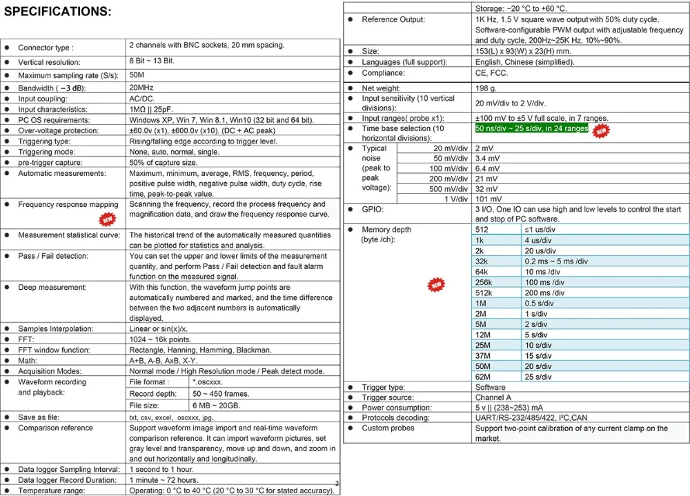 Q: what is the measuring rangeA: The scope could measure 5V(with probe on X1) and 50V(with probe on X10). If you need to measure higher voltage up to 500V, please purchase X100 probe separately.Q: how to contact technical support?A: Please send email to [email protected] Tech Dept will reply ASAP.Q: How long of warranty?A: 3-year warranty for all products.Software / Driver / Manual Download