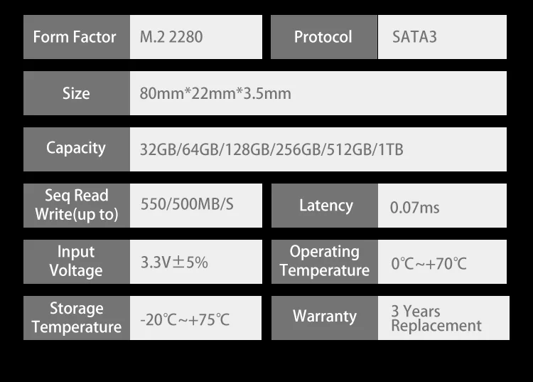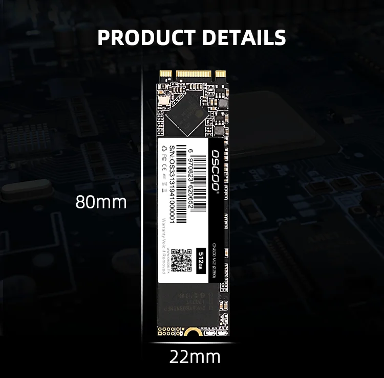 Mejora tu experiencia de almacenamientoFlash 3D TLC NAND para un rendimiento mejorado:El SSD M.2 2280 SATA está equipado con tecnología 3D TLC NAND Flash. Esta memoria flash avanzada no solo proporciona impresionantes velocidades de lectura y escritura, sino que también garantiza un rendimiento duradero. Ya sea que esté ejecutando aplicaciones exigentes o transfiriendo archivos grandes, este SSD lo maneja con facilidad.Diseño de un solo lado para la eficiencia del espacio:El diseño de un solo lado de este SSD maximiza la eficiencia del espacio. Encaja perfectamente en placas base y portátiles con ranuras M.2, lo que lo hace perfecto para sistemas donde el espacio es escaso. Su factor de forma compacto no sacrifica el rendimiento y garantiza que pueda disfrutar de una capacidad de respuesta y tiempos de carga rápidos.Instalación sencilla:Instalar el SSD SATA M.2 2280 es muy fácil. Es una solución Plug-and-play que le permite actualizar su almacenamiento de forma rápida y fácil, para que pueda comenzar a experimentar los beneficios de un acceso más rápido a los datos y un rendimiento mejorado del sistema de inmediato.Eleve su experiencia de almacenamiento al siguiente nivel con el SSD OSCOO M.2 2280 SATA 6 GB/s. Con su flash 3D TLC NAND, diseño de un solo lado y compromiso con la confiabilidad, es la opción perfecta para las personas que exigen soluciones de almacenamiento de primer nivel que brinden un rendimiento y eficiencia excepcionales. Bienvenido a un mundo donde el almacenamiento es potente y ahorra espacio.