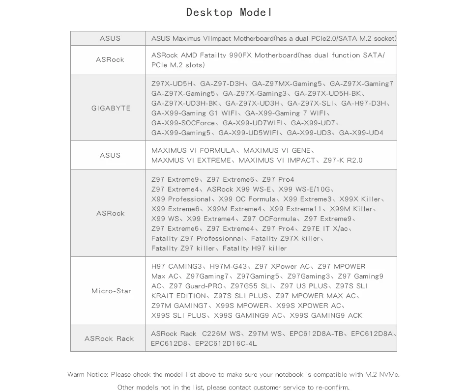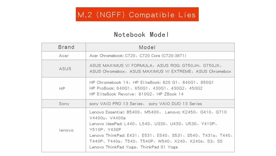 m.2 NGFF SSD utiliza la interfaz de clave B, es diferente del m.2 NVME PCIe.Confirme que su computadora puede admitirla antes de comprar.