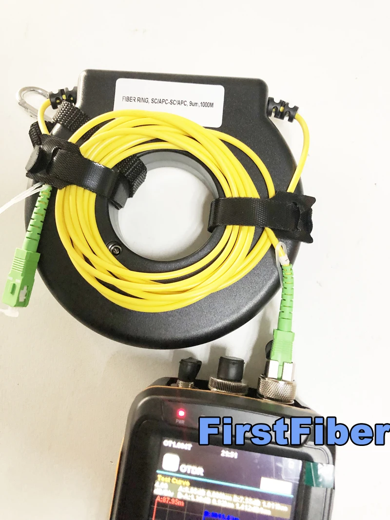 Los conectores SC/FC/LC son seleccionables, así como el modo de pulido UPC y APC. Diseñados para ayudar en la prueba del cable de fibra óptica cuando se utiliza un OTDR. El anillo de fibra de lanzamiento OTDR se utiliza con reflectómetros de dominio óptico de tiempo (OTDR) para ayudar a minimizar los efectos del pulso de lanzamiento de OTDR en la duda de medición.